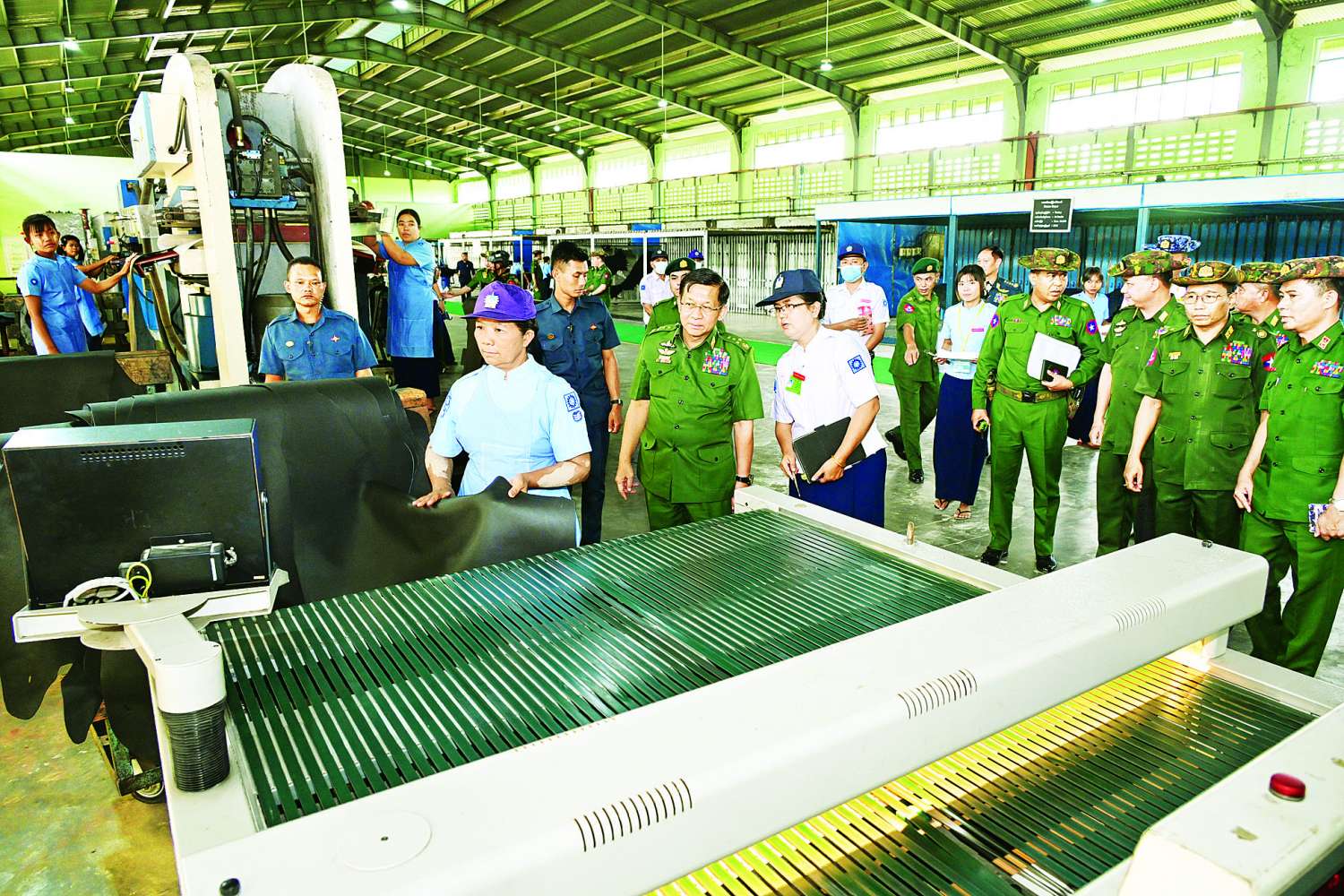 ထို့နောက် နိုင်ငံတော်စီမံအုပ်ချုပ်ရေးကောင်စီဥက္ကဋ္ဌ တပ်မတော်ကာကွယ်ရေးဦးစီးချုပ်သည် တပ်မတော်သားရေစက်ရုံ(မိတ္ထီလာ)အတွင်း လှည့်လည်၍ သားရေ ရေစို ဌာန၊ သားရေအချောကိုင်ဌာန၊ သားရေဆိုးလ်ဌာနတို့အတွင်း သားရေကုန်ကြမ်းထုတ်လုပ်နေမှုအဆင့်ဆင့်ကို ကြည့်ရှုစစ်ဆေးခဲ့ပြီး တာဝန်ရှိသူများ၏ တင်ပြချက်များအပေါ် လိုအပ်သည်များ လမ်းညွှန်မှာကြားသည်။