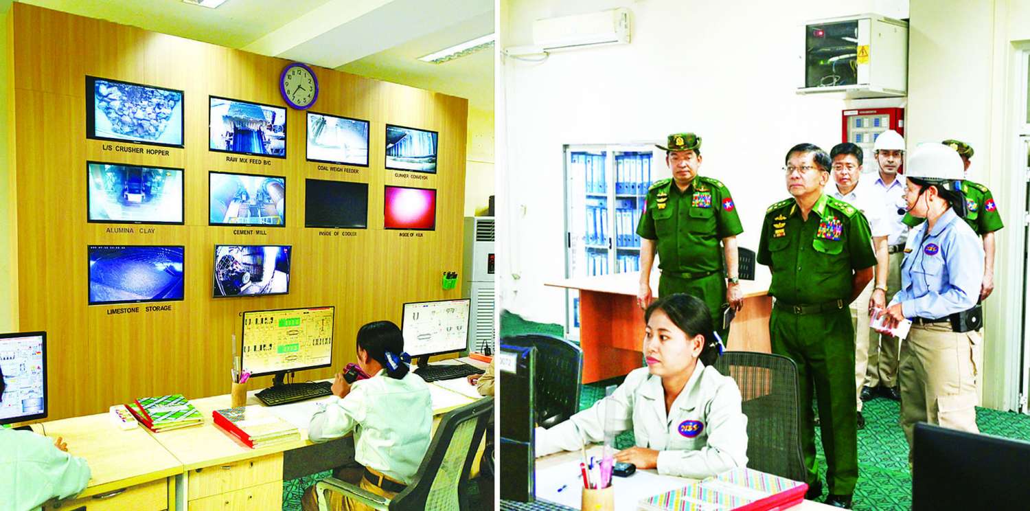 ထို့နောက် နိုင်ငံတော်စီမံအုပ်ချုပ်ရေးကောင်စီဥက္ကဋ္ဌ တပ်မတော်ကာကွယ်ရေးဦးစီးချုပ်သည် ဘိလပ်မြေစက်ရုံအတွင်း ကုန်ထုတ်လုပ်မှုလုပ်ငန်းများ ဆောင်ရွက်နေမှုအခြေအနေများကို လှည့်လည်ကြည့်ရှုစစ်ဆေးပြီး တာဝန်ရှိသူများ၏ တင်ပြချက်များအပေါ် လိုအပ်သည်များ လမ်းညွှန်မှာကြားသည်။