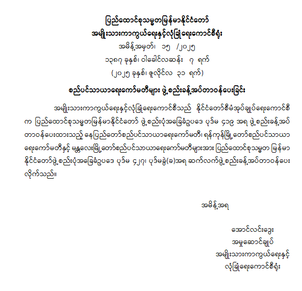 ဝန်ကြီးဌာန ကြေညာချက်များ
