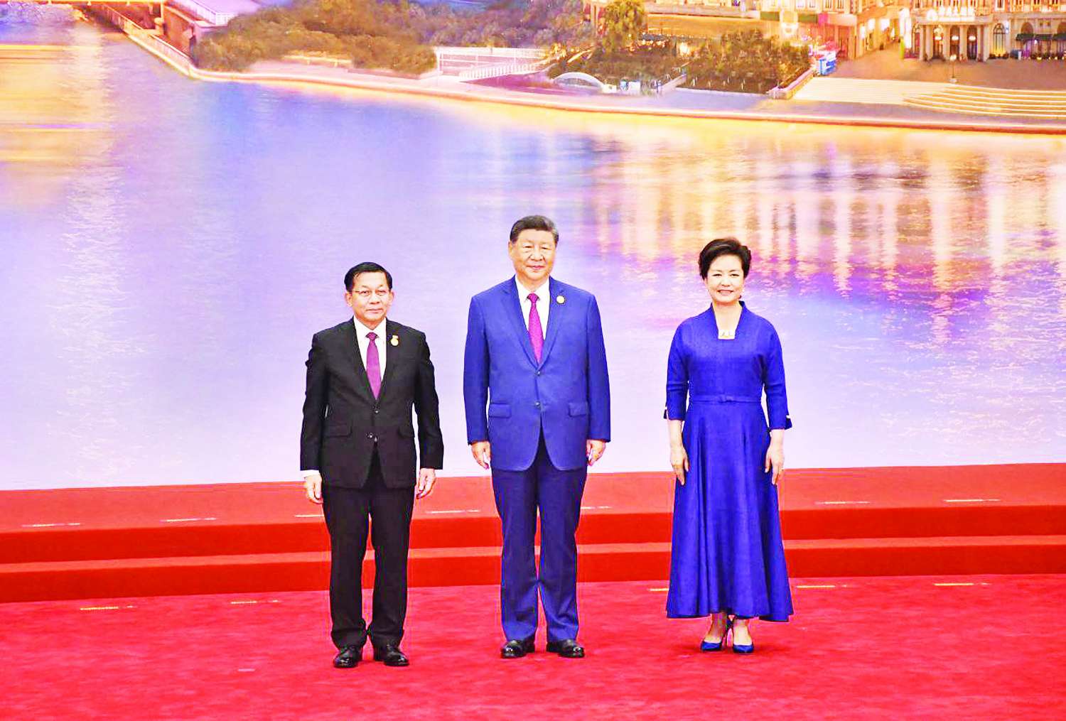 ဦးစွာ ပြည်ထောင်စုသမ္မတမြန်မာနိုင်ငံတော် ယာယီသမ္မတ နိုင်ငံတော်လုံခြုံရေးနှင့် အေးချမ်းသာယာရေးကော်မရှင်ဥက္ကဋ္ဌနှင့် SCO ထိပ်သီးအစည်းအဝေးသို့ ပါဝင်တက်ရောက်ကြမည့် နိုင်ငံပေါင်း ၂၀ ကျော်မှ နိုင်ငံ့ခေါင်းဆောင်များ၊ နိုင်ငံတကာအဖွဲ့အစည်း ၁၀ ခုမှ အကြီးအကဲများအား တရုတ်ပြည်သူ့သမ္မတနိုင်ငံသမ္မတ H.E. Mr. Xi Jinping နှင့် ဇနီးတို့က တစ်ဦးချင်း ရင်းရင်းနှီးနှီးကြိုဆိုနှုတ်ဆက်ပြီး မှတ်တမ်းတင်ဓာတ်ပုံရိုက်ကူးသည်။