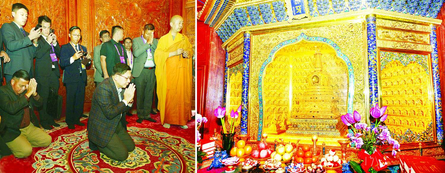 ပြည်ထောင်စုသမ္မတမြန်မာနိုင်ငံတော် ယာယီသမ္မတ နိုင်ငံတော်လုံခြုံရေးနှင့် အေးချမ်းသာယာရေးကော်မရှင်ဥက္ကဋ္ဌ ဗိုလ်ချုပ်မှူးကြီး မင်းအောင်လှိုင် ဦးဆောင်သည့် မြန်မာအဆင့်မြင့်ကိုယ်စားလှယ်အဖွဲ့ ပေကျင်းမြို့ လင်ကွမ်းဘုရားကျောင်းရှိ ဗုဒ္ဓမြတ်စွယ်တော်အား သွားရောက်ဖူးမြော်ကြည်ညို