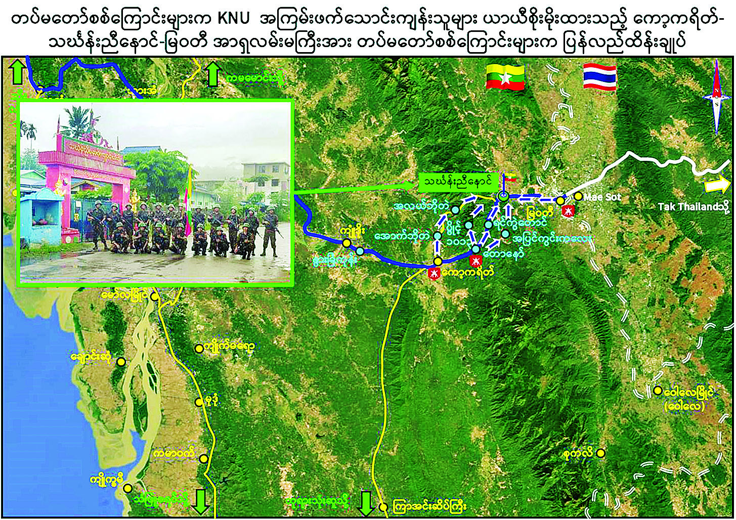 ထိုသို့ တပ်မတော်စစ်ကြောင်းများ၏ ပြင်ဆင်စုဖွဲ့မှုများ ဆောင် ရွက်နေမှုအပေါ် အခွင့်ကောင်းယူ ၍ KNU အကြမ်းဖက်သောင်းကျန်းသူ ပူးပေါင်းအဖွဲ့များသည် ၎င်းတို့ ၏ စစ်ရေးရည်မှန်းချက် ပြန်လည်အကောင်အထည်ဖော်ရန်အတွက် နယ်စပ်ကုန်သွယ်ရေးလမ်းကြောင်းတွင် အဓိကအချက်အချာကျသည့် ဘားအံ - ကော့ကရိတ် - မြဝတီအာရှလမ်းမကြီးနှင့် ကျုံဒိုးမြို့နှင့် ကော့ကရိတ်မြို့အား အပြီးအပိုင်သိမ်းပိုက်နိုင်ရေး ၂၀၂၅ ခုနှစ်၊ ဧပြီ လ ၁၃ ရက်မှစ၍ သာလွန်အင်အားများအသုံးပြုပြီး လမ်းကြောင်း ၅ ကြောင်းဖြင့် ဒုတိယအကြိမ် ထပ်မံဝင်ရောက်လာပြီး ကျုံဒိုးနှင့် ကော့ကရိတ်ကြား အာရှလမ်းမကြီးအား ပိတ်ဆို့ဖြတ်တောက်၍ ကော့ကရိတ်မြို့နှင့် ကျုံဒိုးမြို့အား အပြင်းအထန် ထပ်မံတိုက်ခိုက်လာခဲ့ရာ တပ်မတော်စစ်ကြောင်းများက တပ်မတော်၏အစဉ်အလာကောင်းများနှင့်အညီ တုံးတိုက်တိုက် ကျားကိုက်ကိုက် စိတ်ဓာတ် ဖြင့် အကြမ်းဖက်သောင်းကျန်းသူများကို ခုခံတိုက်ခိုက်ချေမှုန်းခဲ့မှုကြောင့် ၎င်းတို့၏ စစ်ရေးရည် မှန်းချက်များကို တစ်ခုပြီးတစ်ခု ရိုက်ချိုးနိုင်ခဲ့ပြီး ကျုံဒိုး-ကော့ကရိတ်လမ်းကြောင်းတစ်လျှောက်အား ဇူလိုင်လ၂၄ရက်နေ့တွင် တပ်မတော်က ပြန်လည်ထိန်းချုပ်ဖွင့်လှစ်ပေးနိုင်ခဲ့သည်။