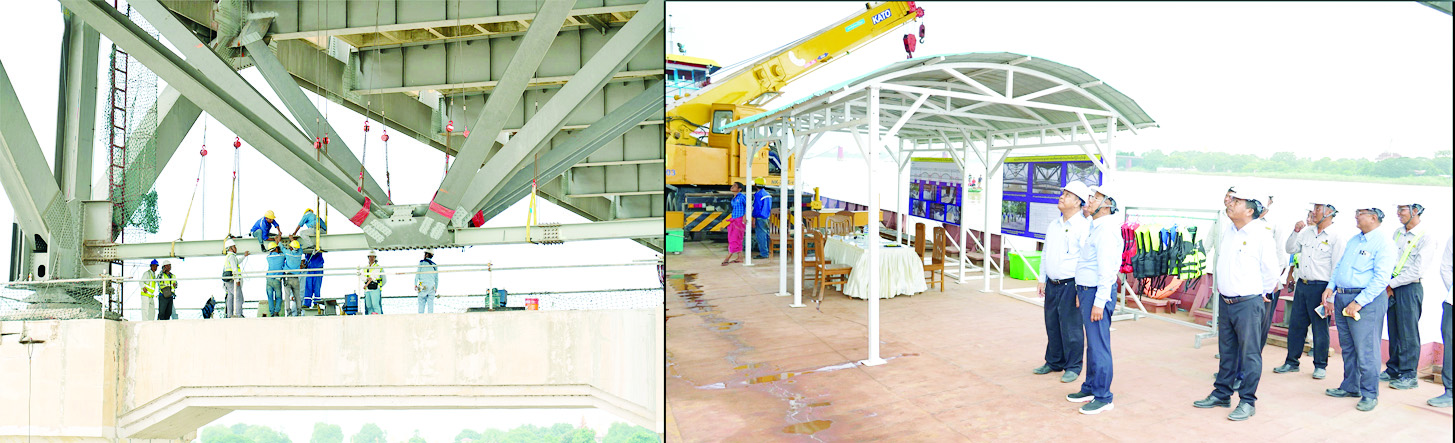 တင်ပြချက်များအပေါ် ဒုတိယဝန်ကြီးက ဧရာဝတီတံတား(ရတနာပုံ) ပြန်လည်ပြင်ဆင်ခြင်းလုပ်ငန်းများ လျာထားချက်နှင့်အညီ ပြီးစီးရန်လိုအပ်ကြောင်း၊ ထပ်မံလှုပ်ခတ်လျက်ရှိသည့် ငလျင်ငယ်များရှိသည့်အတွက် တံတားကြီးထပ်မံပျက်စီးခြင်း ရှိ၊ မရှိ စောင့်ကြည့်စစ်ဆေးသွားရန်နှင့် ပြည်သူများအန္တရာယ်ကင်းရှင်းစွာ သွားလာအသုံးပြုနိုင်စေရေးအတွက် နေ့စဉ်စောင့်ကြည့်စစ်ဆေးပြီး အချိန်နှင့်တစ်ပြေးညီတင်ပြရန် မှာကြားကာ လုပ်ငန်းခွင်အတွင်း ရေယာဉ်ဖြင့် လှည့်လည်ကြည့်ရှုစစ်ဆေးခဲ့ကြောင်း သိရသည်။