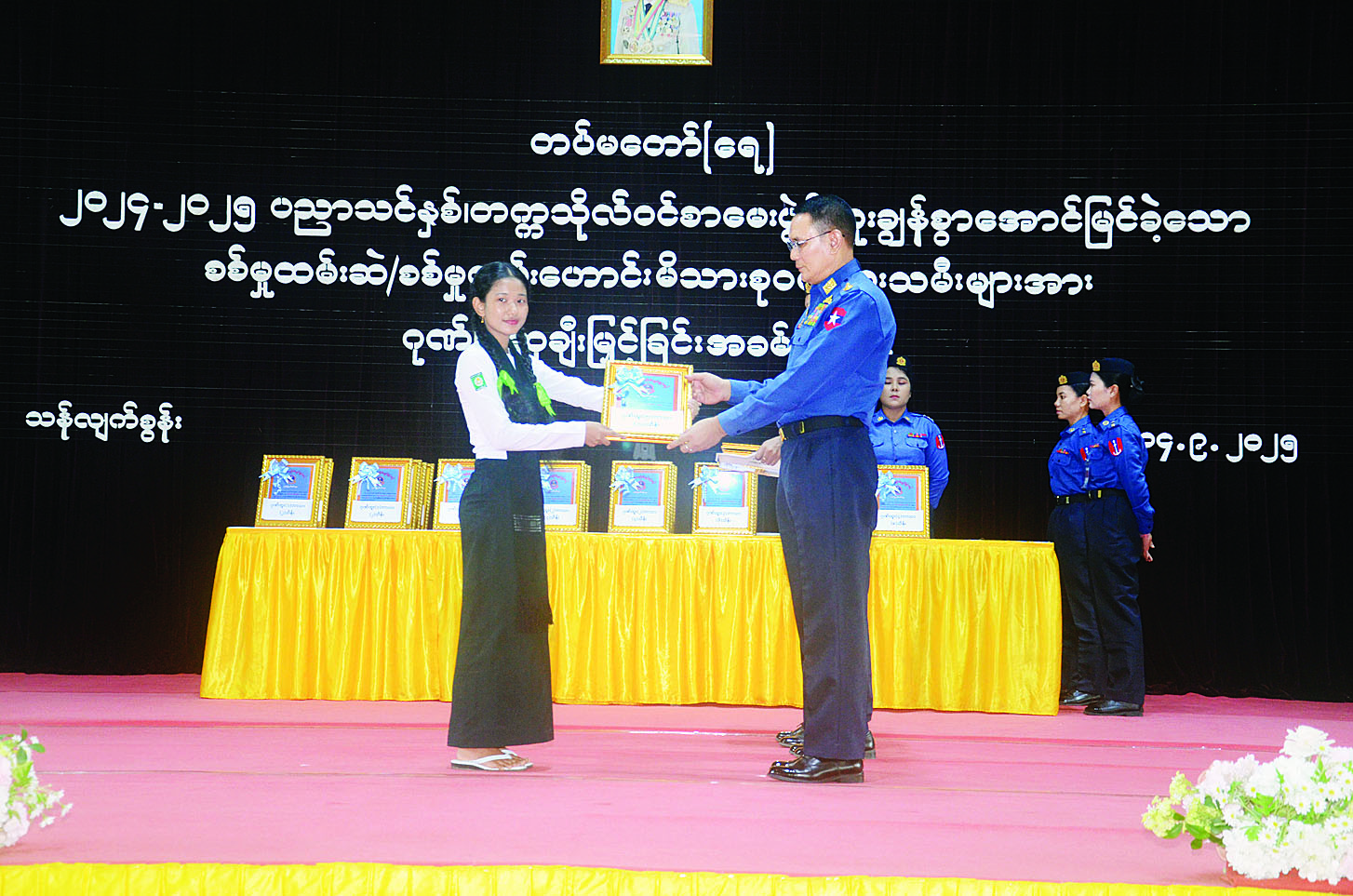 ၂၀၂၄ - ၂၀၂၅ ပညာသင်နှစ် တက္ကသိုလ်ဝင်စာမေးပွဲ၌ ထူးချွန်စွာ အောင်မြင်ခဲ့ကြသည့် တပ်မတော် (ရေ) မှ စစ်မှုထမ်းဆဲနှင့် စစ်မှုထမ်းဟောင်းမိသားစုဝင် သားသမီးများအား ဂုဏ်ပြုဆုချီးမြှင့်ခြင်းကို ယနေ့နံနက်ပိုင်းတွင် ဧရာဝတီရေတပ်စခန်းဌာနချုပ်၌ ကျင်းပပြုလုပ်ရာ ကာကွယ်ရေးဦးစီးချုပ် (ရေ) ဗိုလ်ချုပ်ကြီး ထိန်ဝင်းနှင့် အရာရှိ၊ စစ်သည်၊ မိသားစုများ၊ စစ်မှုထမ်းဟောင်းမိသားစုဝင်များ၊ တက္ကသိုလ်ဝင်စာမေးပွဲ၌ အောင်မြင်ခဲ့ကြသည့် ကျောင်းသား ကျောင်းသူများ၊ ကျောင်းသားမိဘများနှင့် ဖိတ်ကြားထားသူများ တက်ရောက်ကြသည်။