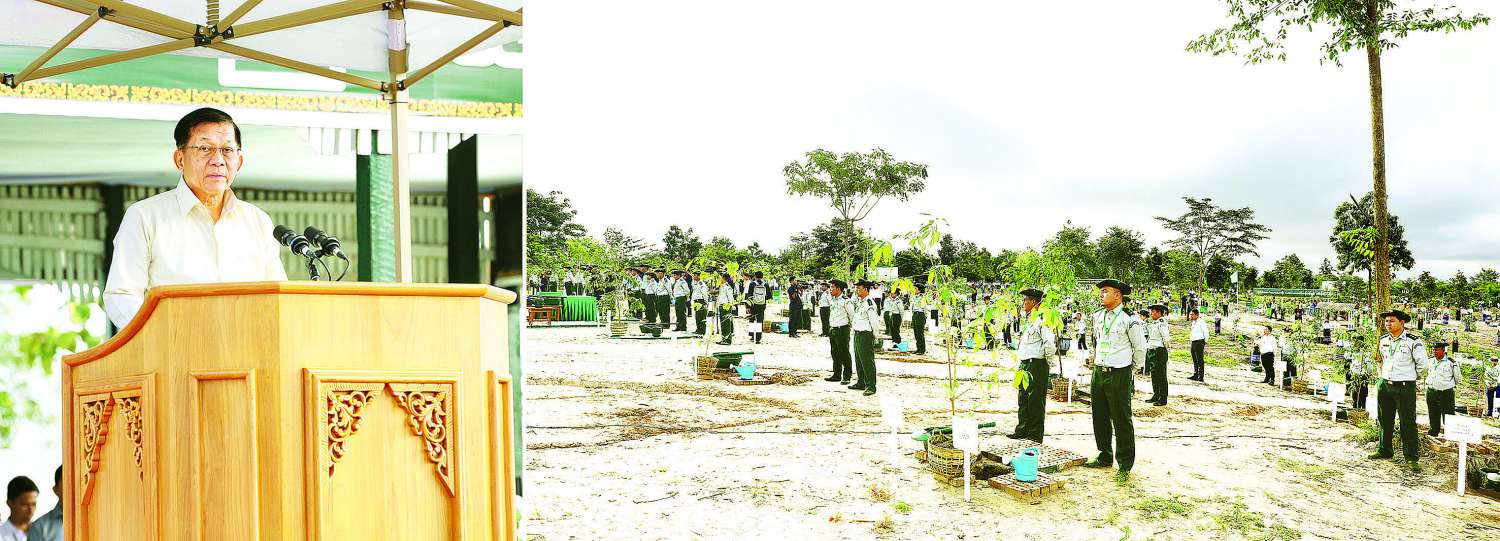 နိုင်ငံနှင့်အဝန်း သစ်တောဖုံးလွှမ်းမှု တိုးတက်လာစေရေးအတွက် မြန်မာနိုင်ငံ သစ်တောများ ပြန်လည်တည်ထောင်ရေးစီမံကိန်း၊ အပူပိုင်းဒေသ (၁၃) ခရိုင် စိမ်းလန်းစိုပြည်ရေးစီမံကိန်း၊ ကမ်းရိုးတန်းဒီရေတောများ ဘက်စုံစီမံအုပ်ချုပ်ခြင်းစီမံကိန်းစသည့် စီမံကိန်းများကို ရည်မှန်းချက်များနှင့်အညီ အောင်မြင်အောင် ကြိုးပမ်းဆောင်ရွက်ကြရမည်ဖြစ်ကြောင်း၊ အလားတူ ကျေးလက်ဒေသပြည်သူများအတွက် တစ်ရွာ (၂) ဧက စိုက်ခင်းများ၊ ကျေးရွာထင်းစိုက်ခင်းများနှင့် ဘက်စုံသုံးစိုက်ခင်းများ တည်ထောင်ခြင်း၊ အာဆီယံလမ်းဘေးဝဲယာ၊ ပြည်ထောင်စုလမ်းမကြီး ဘေးဝဲယာ၊ ရန်ကုန်-မန္တလေး အမြန်လမ်းဘေးဝဲယာအပါအဝင် ကားလမ်းများ၏ ဘေးဝဲယာများတွင် အရိပ်ရအပင်များ၊ တစ်အုပ်တစ်မသစ်တောငယ်များ စိုက်ပျိုးတည်ထောင်သွားကြရမည်ဖြစ်ကြောင်း၊ ထို့ပြင်ရထားလမ်းဘေးဝဲယာတစ်လျှောက်နှင့် သစ်ပင်သစ်တောကျဲပါးသည့် တောင်ကုန်းတောင်ထိပ်များ၊ မြစ်ချောင်းများ၏ ရေဝေရေလဲဧရိယာများနှင့် သဘာဝရေထွက်ဧရိယာများတွင် သစ်ပင်များ စိုက်ပျိုးထိန်းသိမ်းခြင်းတို့ကို အရှိန်အဟုန်ဖြင့် ဆက်လက်အကောင်အထည်ဖော်ဆောင်သွားကြရမည်ဖြစ်ကြောင်း။