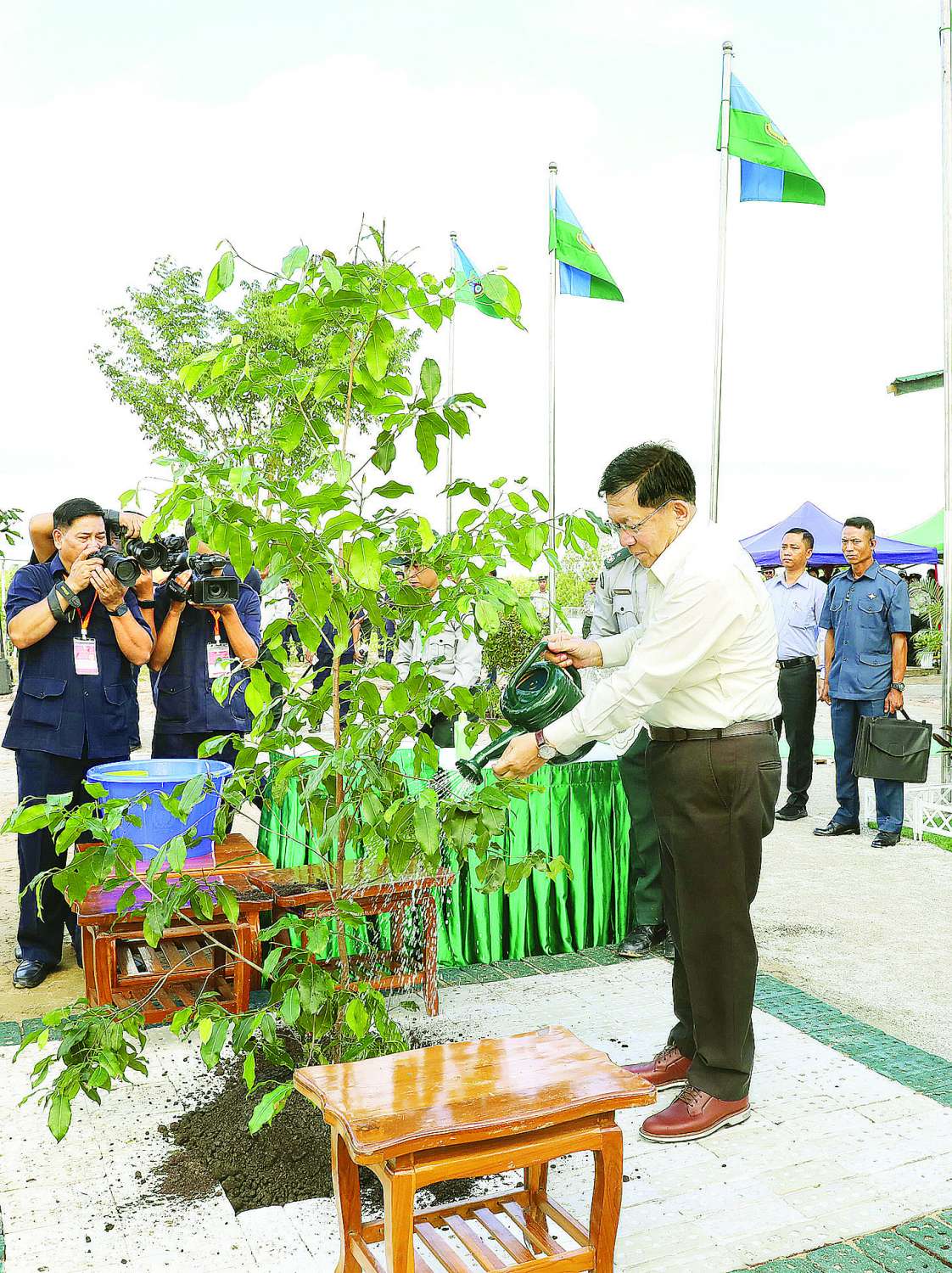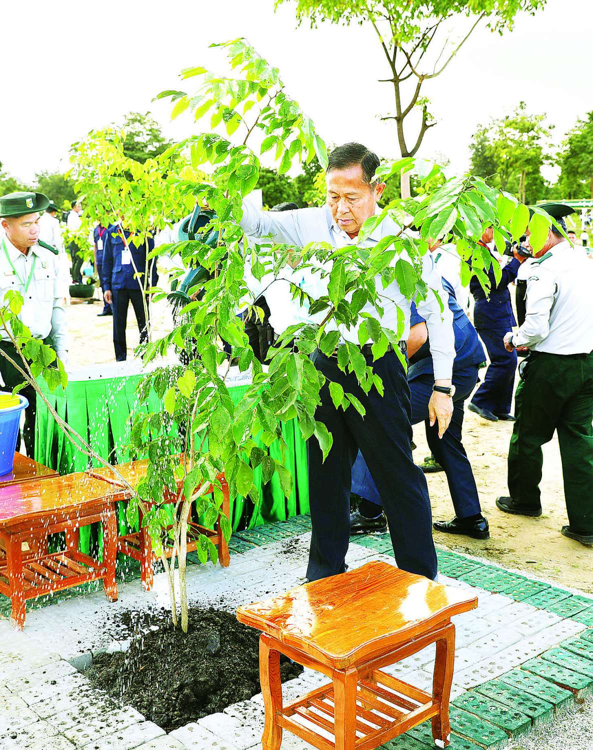 ထို့နောက် ပြည်ထောင်စုသမ္မတမြန်မာနိုင်ငံတော် ယာယီသမ္မတ နိုင်ငံတော်လုံခြုံရေးနှင့်အေးချမ်းသာယာရေးကော်မရှင်ဥက္ကဋ္ဌ ဗိုလ်ချုပ်မှူးကြီး မင်းအောင်လှိုင်က ခရေပျိုးပင်အား သတ်မှတ်နေရာတွင် ဦးဆောင်စိုက်ပျိုးပေးသည်။