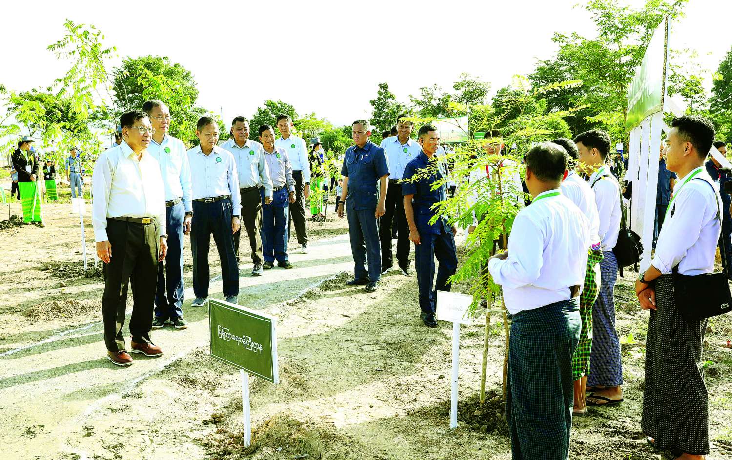 ယင်းနောက် အခမ်းအနားသို့ တက်ရောက်လာကြသည့် ကော်မရှင်ဒုတိယဥက္ကဋ္ဌ ဒုတိယဗိုလ်ချုပ်မှူးကြီး စိုးဝင်း၊ ကော်မရှင်အဖွဲ့ဝင် အမှုဆောင်ချုပ် ဦးအောင်လင်းဒွေး၊ ကော်မရှင်အတွင်းရေးမှူး တွဲဖက်အမှုဆောင်ချုပ် ဗိုလ်ချုပ်ကြီး ရဲဝင်းဦး၊ ပြည်ထောင်စုအဆင့်ပုဂ္ဂိုလ်များနှင့် ပြည်ထောင်စုဝန်ကြီးများ၊ ဖိတ်ကြားထားသည့် ဧည့်သည်တော်ကြီးများနှင့် ကျောင်းသား၊ ကျောင်းသူများ၊ ဝန်ကြီးဌာနများမှ ဌာနဆိုင်ရာ အရာထမ်း၊ အမှုထမ်းများနှင့် တာဝန်ရှိသူများသည် ပျိုးပင်များကို တစ်ပြိုင်တည်း စိုက်ပျိုးပေးကြသည်။