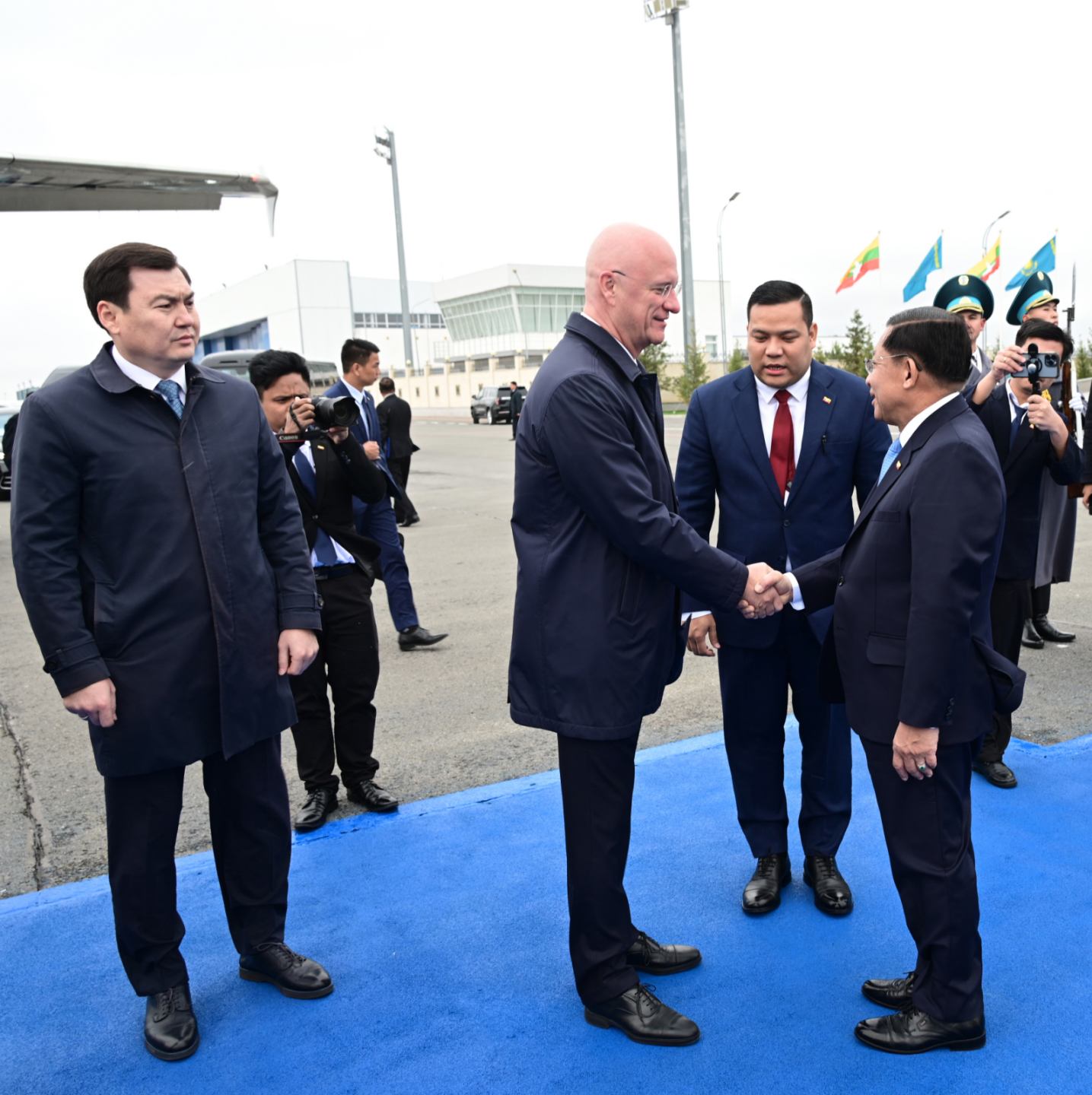 ရုရှားဖက်ဒရေးရှင်းနိုင်ငံ၊ ကာဇက်စတန်နိုင်ငံတို့နှင့် ချစ်ကြည်ရင်းနှီးမှုနှင့် ပူးပေါင်းဆောင်ရွက်မှုများ ပိုမိုတိုးတက်အောင်ဆောင်ရွက်နိုင်ခဲ့သည့် ပြည်ထောင်စုသမ္မတ မြန်မာနိုင်ငံတော်ယာယီသမ္မတ နိုင်ငံတော်လုံခြုံရေးနှင့် အေးချမ်းသာယာရေးကော်မရှင်ဥက္ကဋ္ဌ ဗိုလ်ချုပ်မှူးကြီး မင်းအောင်လှိုင် ဦးဆောင်သည့် မြန်မာအဆင့်မြင့်ကိုယ်စားလှယ်အဖွဲ့ မြန်မာနိုင်ငံသို့ ပြန်လည်ရောက်ရှိ