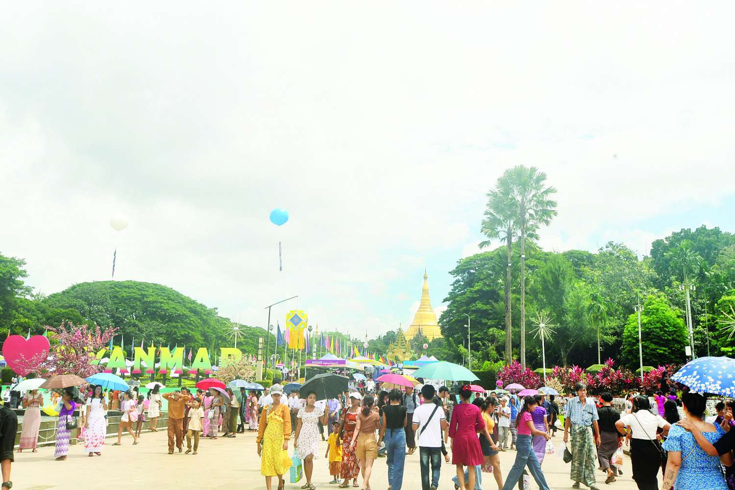 ရန်ကုန်တိုင်းဒေသကြီး သီတင်းကျွတ်ဈေးရောင်းပွဲတော်တွင် ပြည်တွင်းဒေသထွက် ထုတ်ကုန်များကို ရောင်းချပေးလျက်ရှိရာ ဝယ်ယူအားပေးကြသူများဖြင့် စည်ကားလျက်ရှိ