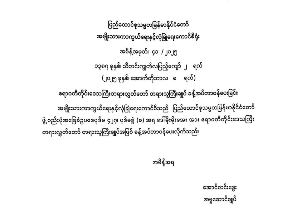 ဝန်ကြီးဌာန ကြေညာချက်များ