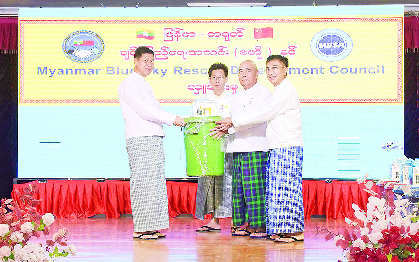 မြန်မာ-တရုတ်ချစ်ကြည်ရေးအသင်း(ဗဟို)နှင့် Myanmar Blue Sky Rescue Development Council တို့ ပူးပေါင်း၍ ငလျင်ဘေးသင့်ပြည်သူများအတွက် ပေးပို့လှူဒါန်းထားသော ဆိုလာမီးအိမ် အလုံး ၃၀၀ နှင့် အိမ်ထောင်စုတစ်စုလျှင် ငွေကျပ် ၅၀၁၀၀ တန်ဖိုးရှိ ထောက်ပံ့ပစ္စည်းများကို မန္တလေးတိုင်းဒေသကြီးအစိုးရအဖွဲ့မှ ငလျင်ဘေးသင့်ဝန်ထမ်းအိမ်ထောင်စု ၅၀၀ နှင့် အောင်မြေသာစံမြို့နယ် ငလျင်ဘေးသင့် အိမ်ထောင်စု ၁၅၀၀ တို့အတွက် ပေးအပ်ခြင်းအခမ်းအနားကို ယနေ့နံနက်ပိုင်းက ချမ်းအေးသာစံမြို့နယ် ကမ်းနားလမ်းရှိ ကြင်းတောယန် ဗုဒ္ဓဘာသာကျောင်း၌ ကျင်းပသည်။
