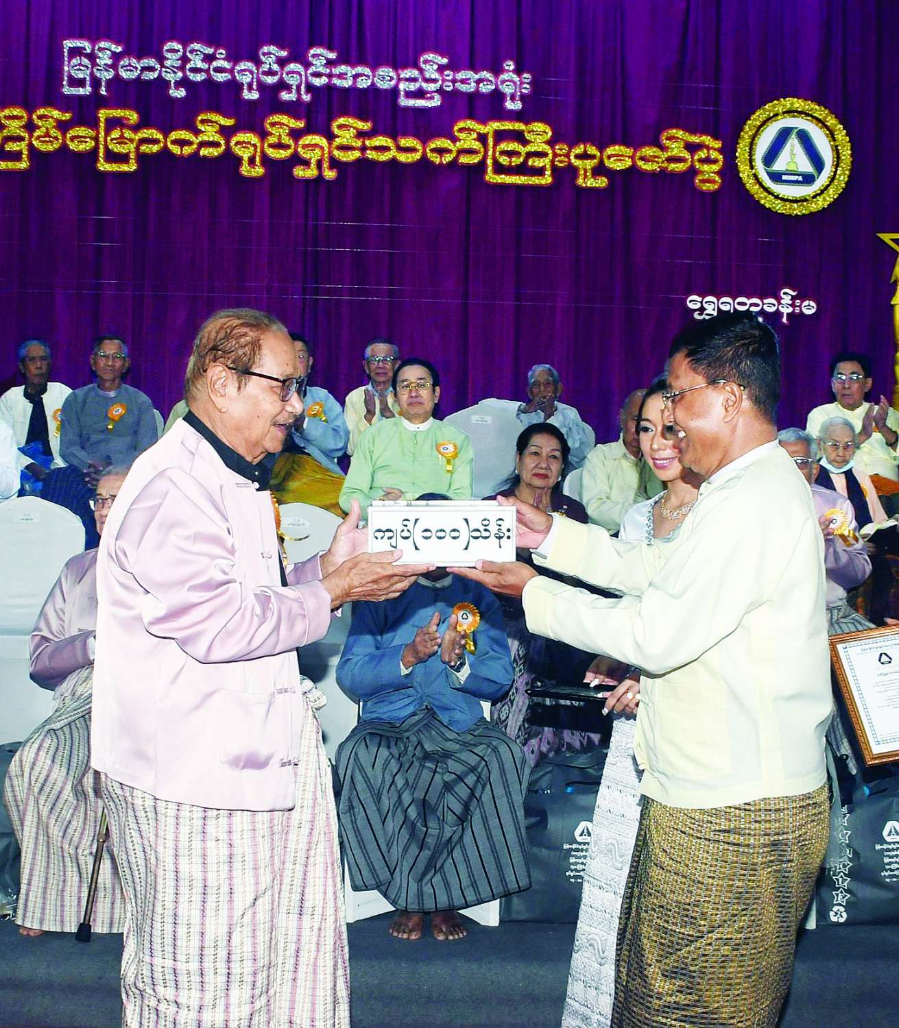 (၁၀၅) နှစ်မြောက် မြန်မာ့ရုပ်ရှင်နေ့နှင့် (၄၈) ကြိမ်မြောက် မြန်မာ့ရုပ်ရှင်သက်ကြီးပူဇော်ပွဲကျင်းပ နိုင်ငံတော်ယာယီသမ္မတ နိုင်ငံတော်လုံခြုံရေးနှင့်အေးချမ်းသာယာရေးကော်မရှင်ဥက္ကဋ္ဌ ဗိုလ်ချုပ်မှူးကြီး မင်းအောင်လှိုင်နှင့်ဇနီး ဒေါ်ကြူကြူလှ မိသားစုက ငွေကျပ်သိန်း ၁၀၀ လှူဒါန်း