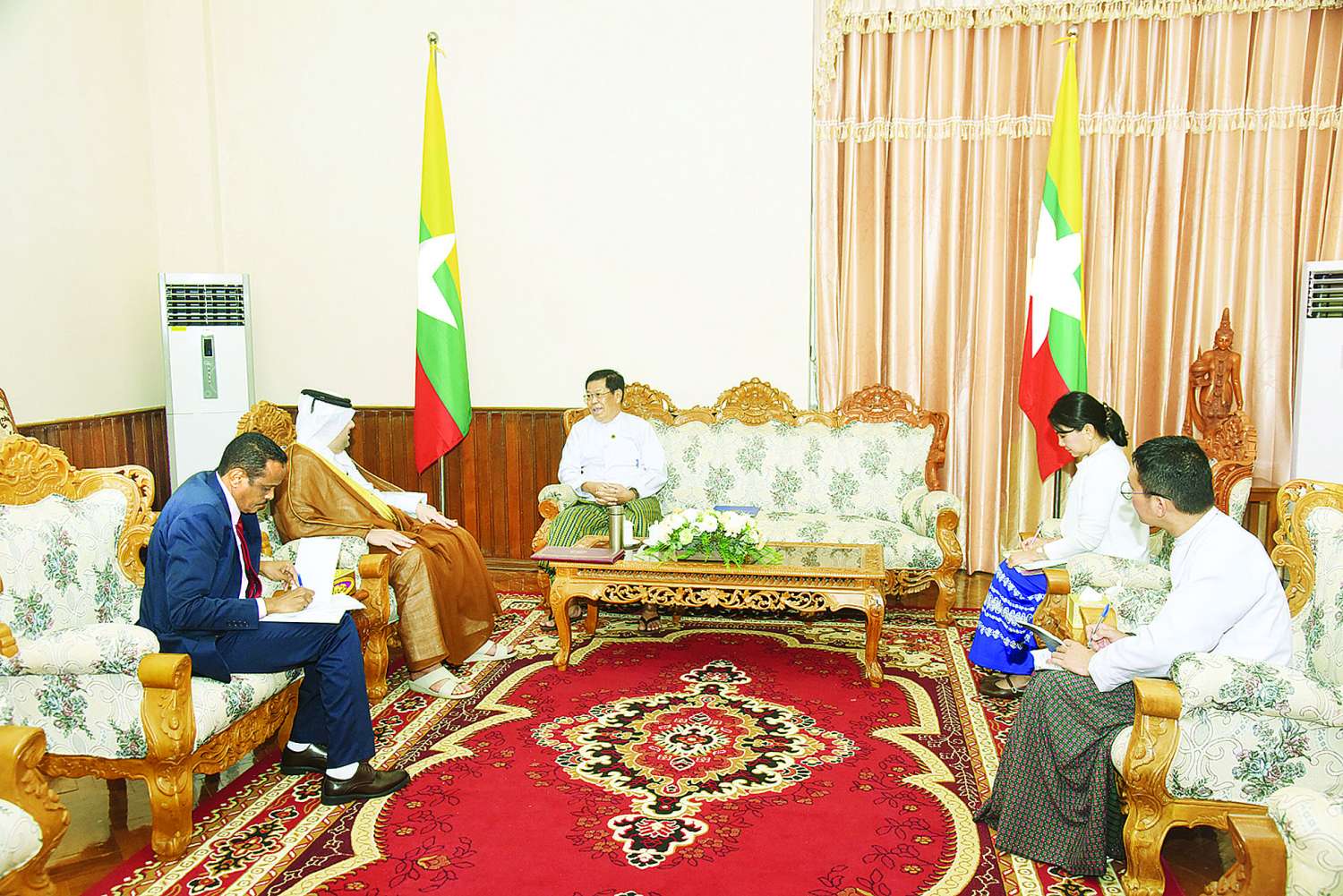 ပြည်ထောင်စုဝန်ကြီး ဦးသန်းဆွေ ကာတာသံရုံးယာယီတာဝန်ခံ ဒေါက်တာ ရာရှစ်အက်ဘ်ဒူလာ အမ်အေအယ်လ်ကူဝါရီအား လက်ခံတွေ့ဆုံ