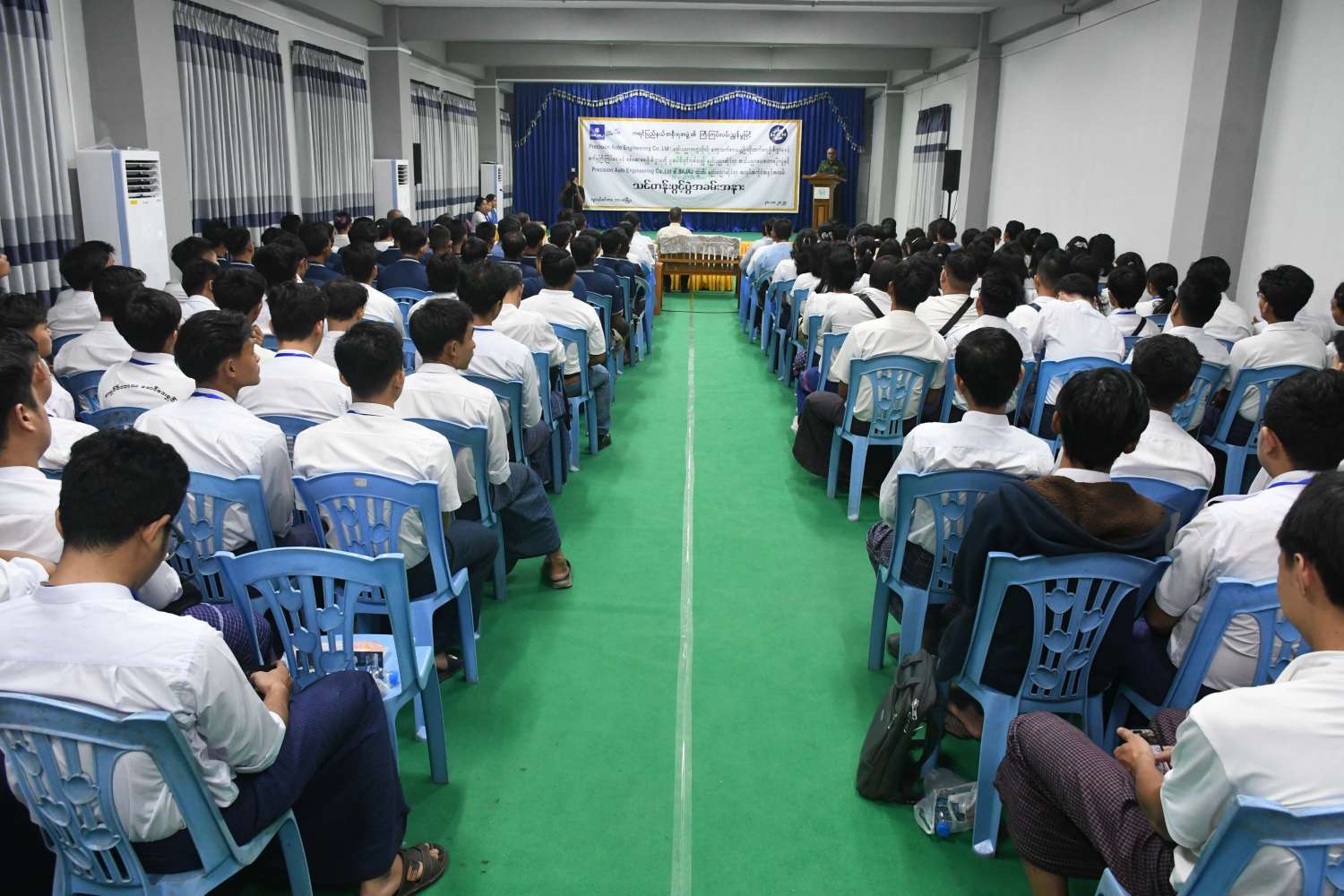ထို့နောက် Precision Auto Engineering Co.,Ltd မန်းနေဂျင်းဒါရိုက်တာ Mr Vrlkam Krishna က သုံးဘီးနည်းပညာဆိုင်ရာ အလုပ်အကိုင်အခွင့်အလမ်းသင်တန်းနှင့်ပတ်သက်၍ရှင်းလင်းပြောကြားပြီး နည်းပညာတက္ကသိုလ်ဒုတိယပါမောက္ခချုပ် ဒေါက်တာအောင်ဇော်လတ်က အသိပညာပေးဟောပြောပွဲ ဆောင်ရွက်ခြင်းအကြောင်းအားရှင်းလင်းတင်ပြပြီး ကျေးဇူးတင်စကားပြောကြားသည်။ ထို့နောက် ပြည်နယ်တရားလွှတ်တော်တရားသူကြီးချုပ်ဦးညွန့်လင်းက အသိပညာပေးဆွေးနွေးဟောပြောမည့်သူများနှင့် Precision Auto Engineering Co.,Ltd တို့အား ဂုဏ်ပြု လက်မှတ်များပေးအပ်ချီးမြှင့်သည်။