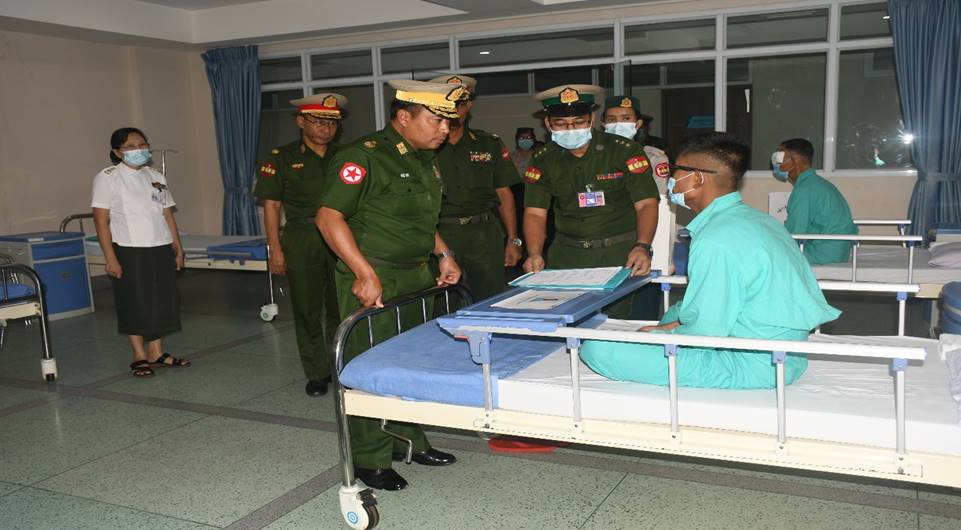 ထို့နောက် တိုင်းစစ်ဌာနချုပ်အလိုက် တိုင်းမှူးများနှင့်တာဝန်ရှိသူများသည် ဆေးရုံများအတွင်းလှည့်လည်ကြည့်ရှုစစ်ဆေး၍ လိုအပ်သည်များညှိနှိုင်းဆောင်ရွက်ပေးခဲ့ကြောင်း သတင်းရရှိသည်။