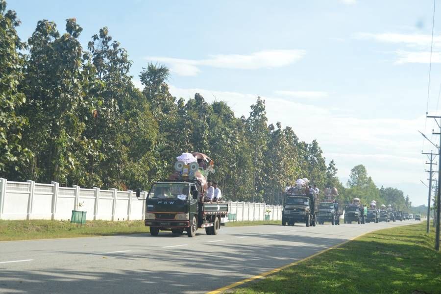 အဆိုပါစုပေါင်းမဟာဘုံကထိန်အလှူတော်မင်္ဂလာတွင် တိုင်းစစ်ဌာနချုပ်များမှ အရာရှိ၊ စစ်သည်၊ မိသားစုများနှင့် အလှူရှင်များက လှူဒါန်းသည့် ကထိန်သင်္ကန်း၊ လှူဖွယ်ပစ္စည်းများနှင့် နဝကမ္မအလှူငွေများပါဝင်သော ပဒေသာပင်များ ဆက်ကပ်လှူဒါန်းကြရာ အရှေ့အလယ်ပိုင်းတိုင်းစစ်ဌာနချုပ်မှ အရာရှိ၊ စစ်သည်၊ မိသားစုများနှင့် အလှူရှင်များက လှူဒါန်းသည့် ငွေကျပ် ၄၃၇ သိန်းကျော် တန်ဖိုးရှိ ကထိန်သင်္ကန်း၊ လှူဖွယ်ပစ္စည်းများနှင့် နဝကမ္မအလှူငွေများပါဝင်သော ပဒေသာပင် ၁၉ ခုကို လည်းကောင်း၊ အရှေ့တောင်တိုင်းစစ်ဌာနချုပ်မှ အရာရှိ၊ စစ်သည်၊ မိသားစုများနှင့် အလှူရှင်များက လှူဒါန်းသည့် ငွေကျပ် ၅၄၈ သိန်းကျော် တန်ဖိုးရှိ ကထိန်သင်္ကန်း၊ လှူဖွယ်ပစ္စည်းများနှင့် နဝကမ္မအလှူငွေများပါဝင်သော ပဒေသာပင် ၆၂ ခုကို လည်းကောင်း၊ အနောက်ပိုင်းတိုင်းစစ်ဌာနချုပ်မှ အရာရှိ၊ စစ်သည်၊ မိသားစုများနှင့် အလှူရှင်များက လှူဒါန်းသည့် ငွေကျပ် ၄၇၈ သိန်းကျော် တန်ဖိုးရှိကထိန်သင်္ကန်း၊ လှူဖွယ်ပစ္စည်းများနှင့် နဝကမ္မအလှူငွေများပါဝင်သော ပဒေသာပင် ၁၃ ခုကိုလည်းကောင်း၊ တောင်ပိုင်းတိုင်းစစ်ဌာနချုပ်မှ အရာရှိ၊ စစ်သည်၊ မိသားစုများနှင့် အလှူရှင်များက လှူဒါန်းသည့် ငွေကျပ် ၃၅၃ သိန်းကျော်တန်ဖိုးရှိ ကထိန်သင်္ကန်း၊ လှူဖွယ်ပစ္စည်းများနှင့် နဝကမ္မအလှူငွေများပါဝင်သော ပဒေသာပင် ၃၂ ခုကို လည်းကောင်း သက်ဆိုင်ရာဘုန်းတော်ကြီးကျောင်းများသို့ ပို့ဆောင်ဆက်ကပ်လှူဒါန်းခဲ့ကြကြောင်း သတင်းရရှိသည်။