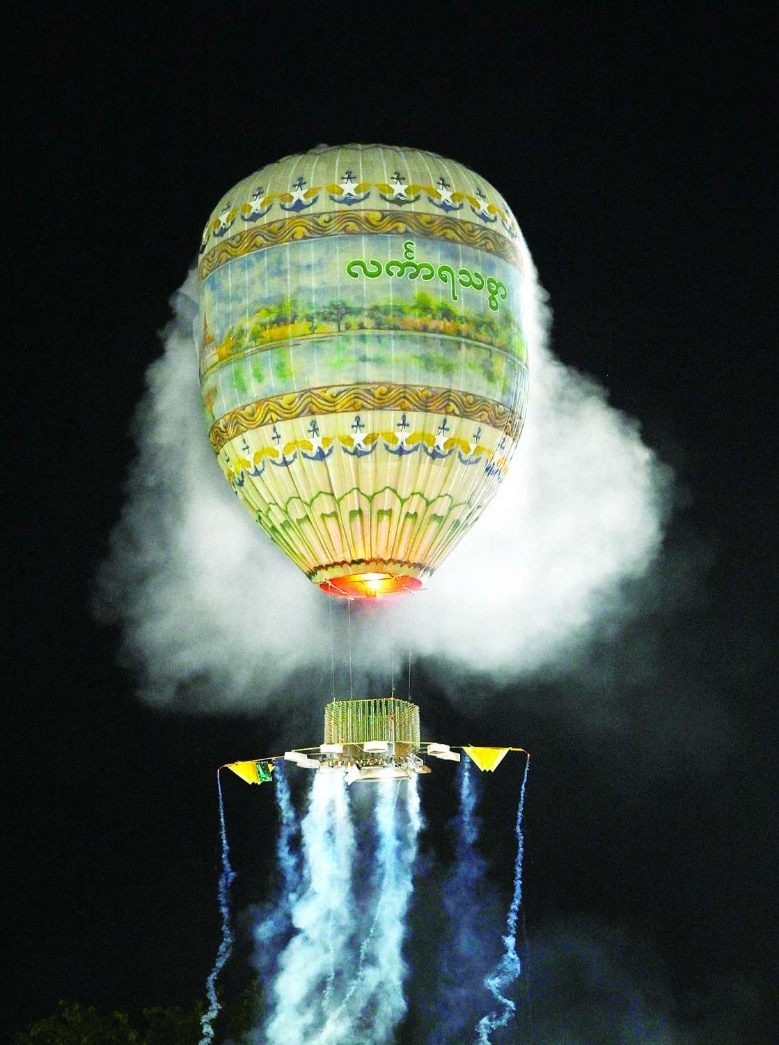 ထို့နောက် မီးပုံးပျံလွှတ်တင်၍ မြတ်စွာဘုရားရှင်အား ပူဇော်မည့်အချိန်တွင် တိုင်းရင်းသားရိုးရာအကအလှများ၊ အိုးစည်ဒိုးပတ်၊ သံချပ်တီးလုံးများဖြင့် တွဲဖက်၍ ဘုရားဝင်းအတွင်း သတ်မှတ်နေရာများအလိုက် မီးရှူး၊ မီးပန်းများ ပစ်ဖောက်ပူဇော်ခြင်းနှင့် မီးပုံးပျံအသေးများ၊ အလှညမီးကြီးနှင့် စိန်နားပန် မီးပုံးပျံကြီးများအား ကောင်းကင်ယံထက်သို့ အောင်မြင်စွာ လွှတ်တင်ပူဇော်ကြရာ ဘုရားဖူးလာပြည်သူများ၏ ကြည်နူးပီတိလက်ခုပ်သံများဖြင့် နေပြည်တော် တန်ဆောင်မုန်းလ၏ ညအလှကို ပိုမိုပေါ်လွင်စေခဲ့သည့်အပြင် တေးသံရှင်များ၏ တန်ဆောင်တိုင်ပွဲတော်ကာလကို ဖော်ကြူးရေးဖွဲ့ထားသည့် တေးသီချင်းများ သီဆိုဖျော်ဖြေမှုကြောင့်လည်း ပွဲတော်ကြီးကို ပိုမိုပြည့်စုံစေခဲ့သည်။