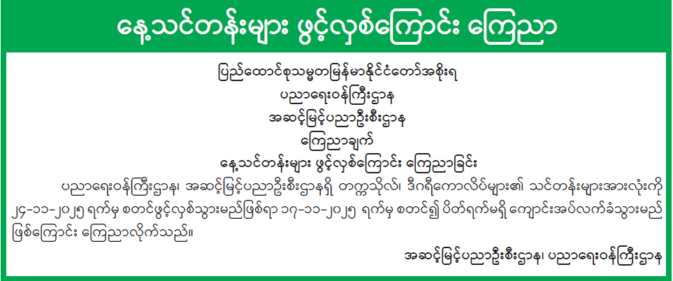 နေ့သင်တန်းများ ဖွင့်လှစ်ကြောင်း ကြေညာခြင်း