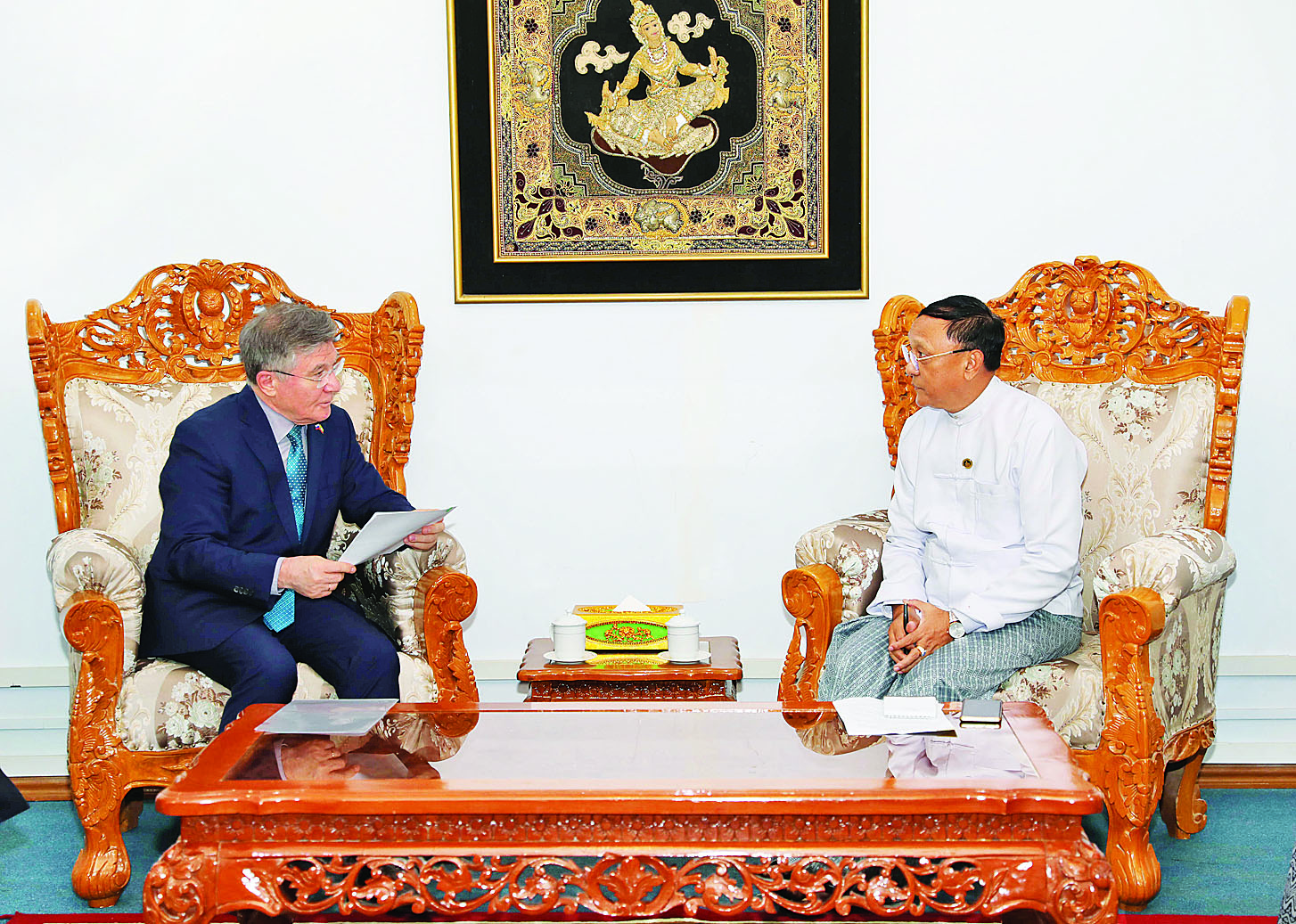 နိုင်ငံခြားရေးဝန်ကြီးဌာန ဒုတိယဝန်ကြီး ဦးကိုကိုကျော်သည် မြန်မာနိုင်ငံဆိုင်ရာ ရုရှားနိုင်ငံသံအမတ်ကြီး H.E. Mr. Iskander Azizov ကို ယနေ့နံနက် ၁၁ နာရီခွဲတွင် နေပြည်တော်ရှိ နိုင်ငံခြားရေးဝန်ကြီးဌာန၌ လက်ခံတွေ့ဆုံသည်။