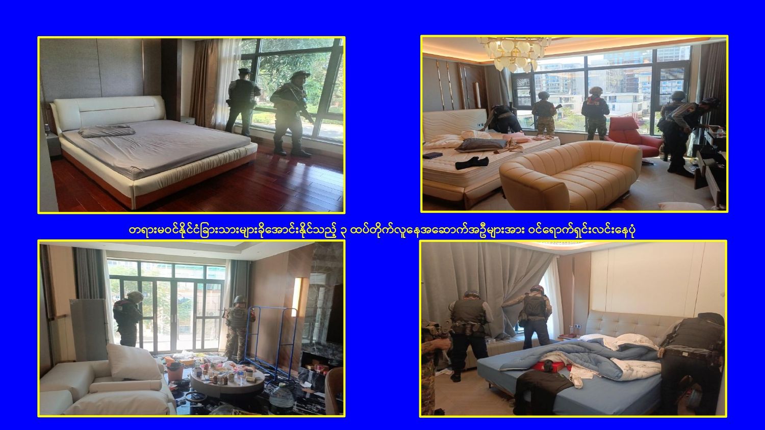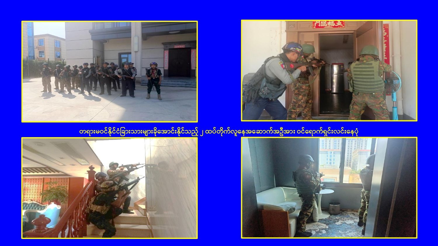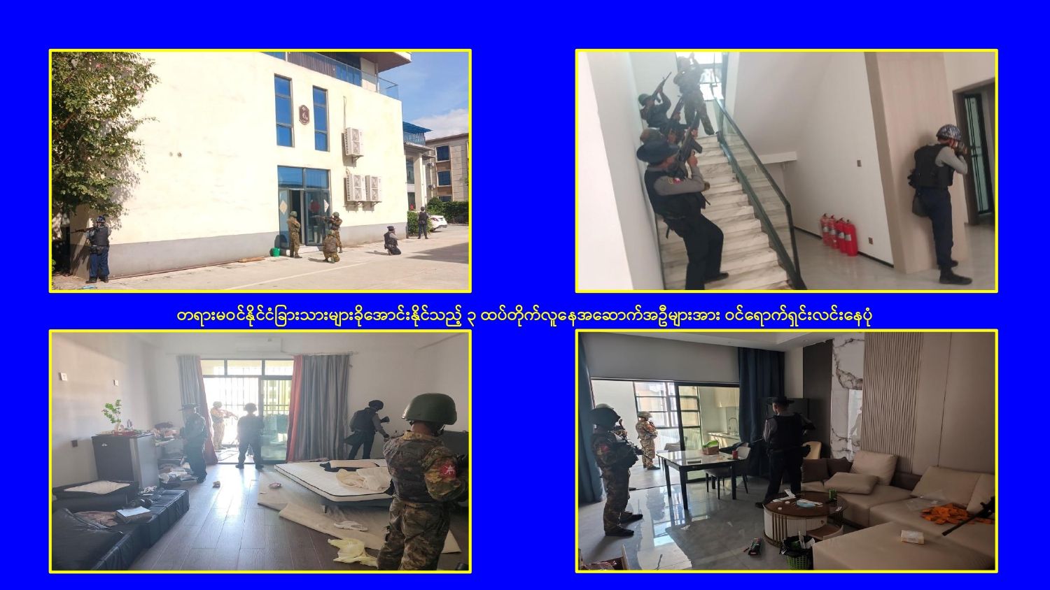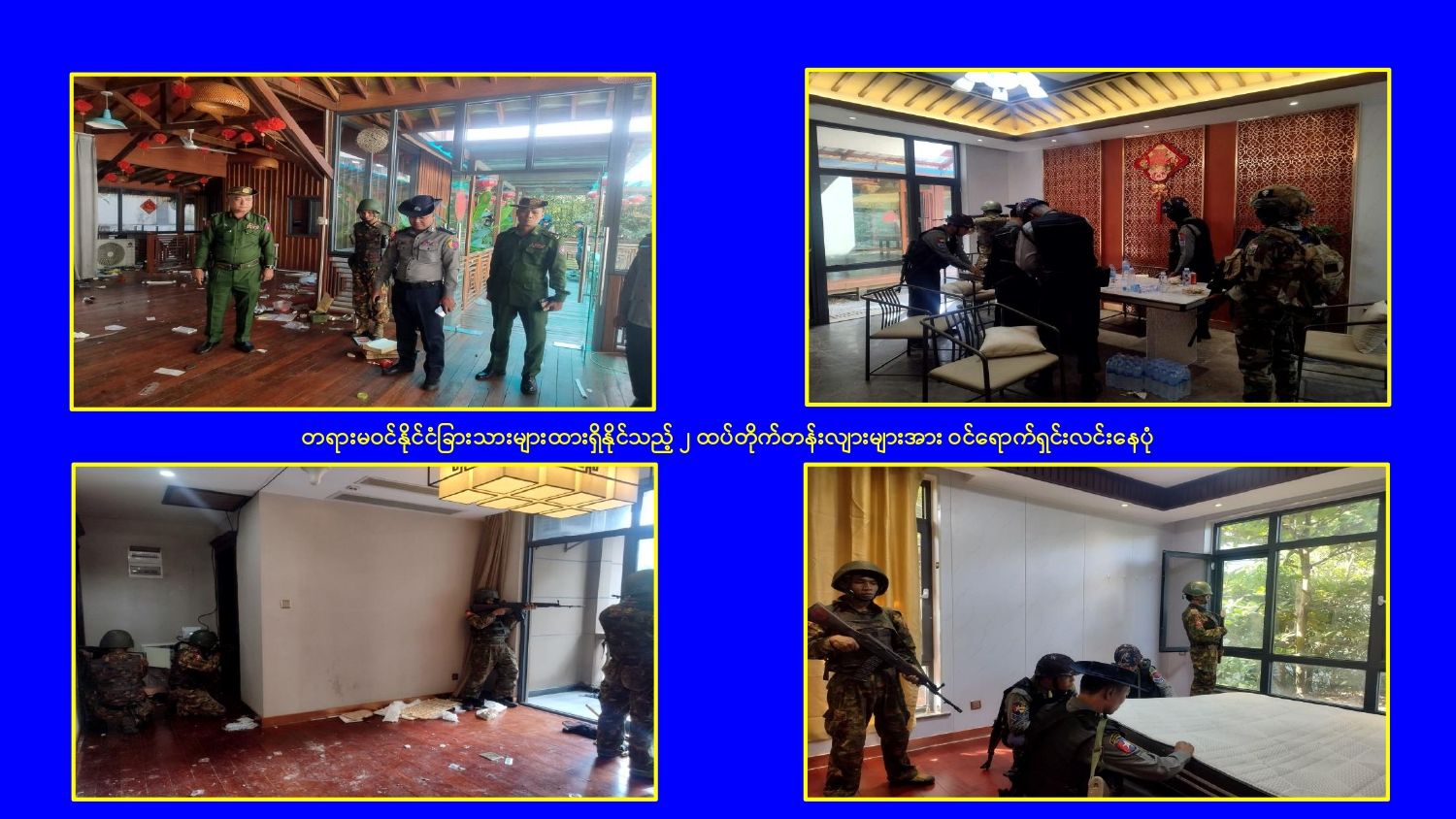 မြန်မာနိုင်ငံအစိုးရအနေဖြင့် မြဝတီမြို့နယ်ရှိ ရွှေကုက္ကိုလ်နယ်မြေနှင့် KK Park နယ်မြေများ၌ ကမ္ဘာတစ်ဝန်းလုံးမှ ကန့်ကွက်ရှုတ်ချလျက်ရှိသော online လိမ်လည်မှုများ နှင့် online လောင်းကစားမှုများ ကျူးလွန်လုပ်ဆောင်ခဲ့ကြသည့် နေရာများတွင် လုံခြုံရေးတပ်ဖွဲ့ဝင်များ၊ အုပ်ချုပ်ရေးအဖွဲ့အစည်းများနှင့် ဒေသတွင်း တာဝန်ရှိသူများ ပါဝင်သည့် ပူးပေါင်းစစ်ဆင်ရေးအဖွဲ့များဖြင့် ဝင်ရောက်ရှင်းလင်းခြင်း၊ တရားမဝင်အဆောက်အအုံများနှင့် online လိမ်လည်မှုများတွင် အသုံးပြုခဲ့သည့် အသုံးအဆောင်ပစ္စည်းများအား စနစ်တကျ ဖြိုချဖျက်ဆီးခြင်း၊ တရားမဝင် ပြည်ပနိုင်ငံသားများအား ဖော်ထုတ်ဖမ်းဆီးအရေးယူဆောင်ရွက်ခြင်း၊ သက်ဆိုင်ရာနိုင်ငံများသို့ ပြည်နှင်လွှဲပြောင်းပေးခြင်းများ ဆက်လက်ဆောင်ရွက်လျက်ရှိသည်။