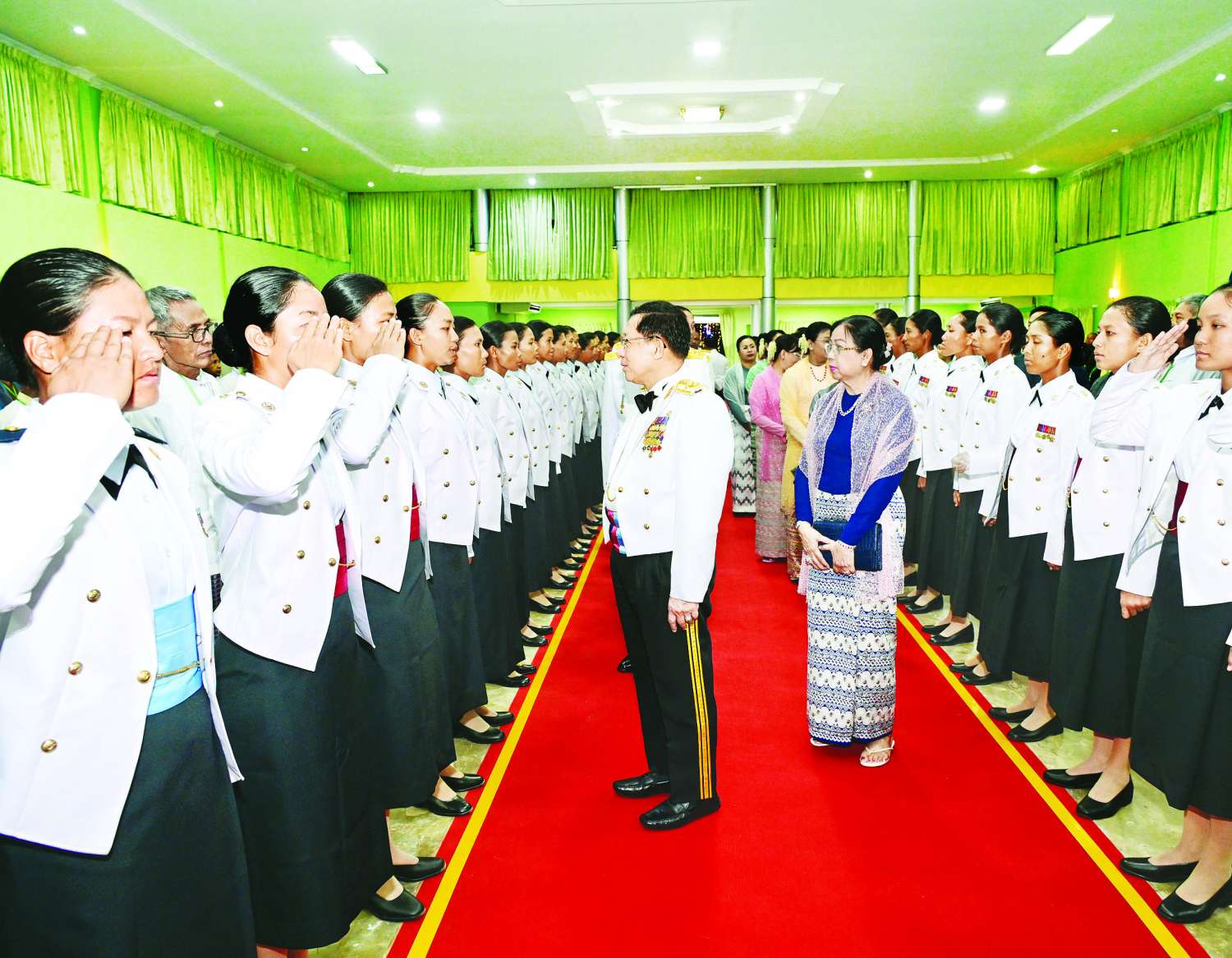 ဦးစွာ နိုင်ငံတော်လုံခြုံရေးနှင့် အေးချမ်းသာယာရေးကော်မရှင်ဥက္ကဋ္ဌ တပ်မတော်ကာကွယ်ရေးဦးစီးချုပ်က သင်တန်းဆင်းအမျိုးသမီးအရာရှိများအား တစ်ဦးချင်း ရင်းရင်းနှီးနှီးလိုက်လံနှုတ်ဆက်သည်။ ထို့နောက် နိုင်ငံတော်လုံခြုံရေးနှင့် အေးချမ်းသာယာရေးကော်မရှင်ဥက္ကဋ္ဌ တပ်မတော်ကာကွယ်ရေးဦးစီးချုပ်နှင့်အဖွဲ့ဝင်များသည် သင်တန်းဆင်းအမျိုးသမီးအရာရှိများ၊ ညစာစားပွဲတက်ရောက်လာကြသူများနှင့်အတူ ဂုဏ်ပြုညစာကို အတူတကွသုံးဆောင်ကြသည်။