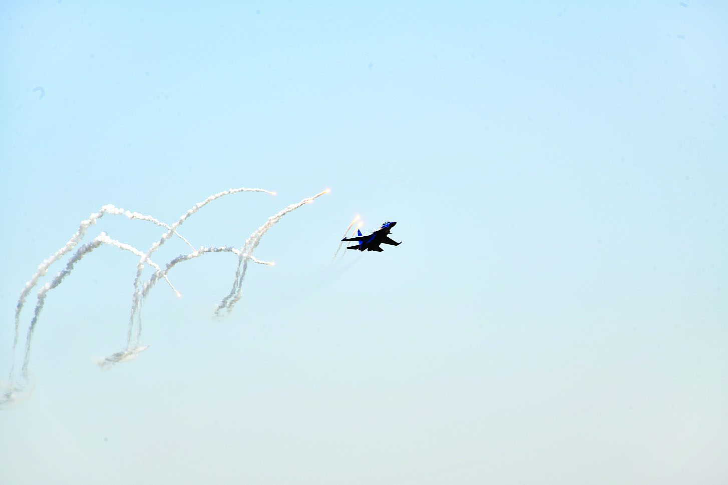 ထို့နောက် စတုတ္ထမျိုးဆက်လွန်ဘက်စုံသုံးအကြီးစားတိုက်လေယာဉ်ဖြစ်သည့် Su-30 SME တိုက်လေယာဉ်တစ်စီးက Point Roll Maneuver ၊ High-G Turn Maneuver ၊ Derry Turn Maneuver ၊ Oblique Loop Maneuver ၊ Combat Turm Maneuver ၊ Flap Spin Maneuver တို့ဖြင့် စွမ်းရည်ပြပျံသန်းပြီး နောက်ဆုံးတွင် Slow Flight Maneuver ဖြင့် ပျံသန်းသရုပ်ပြသ၍ မီးကျည်များကို ပစ်လွှတ်ကာ နိုင်ငံတော်လုံခြုံရေးနှင့် အေးချမ်းသာယာရေးကော်မရှင်ဥက္ကဋ္ဌ တပ်မတော်ကာကွယ်ရေးဦးစီးချုပ်အား အလေးပြုသည်။