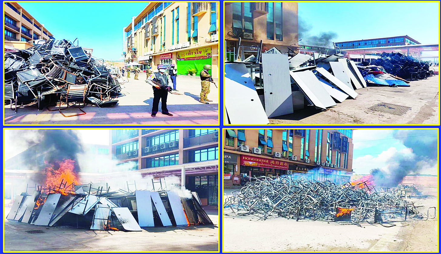 ယင်းအပြင် မြဝတီမြို့နယ်အတွင်းရှိ KK Park နယ်မြေနှင့် ရွှေကုက္ကိုလ်နယ်မြေတို့၌ အွန်လိုင်းလိမ်လည် လောင်းကစားမှုကျူးလွန်ရာတွင် အသုံးပြုသည့်ပစ္စည်းများအား ထပ်မံ၍ အသုံးပြုနိုင်ခြင်းမရှိစေရန်အတွက် ယနေ့တွင်လည်း စနစ်တကျ မီးရှို့ဖျက်ဆီးခဲ့ကြောင်း သိရှိရသည်။