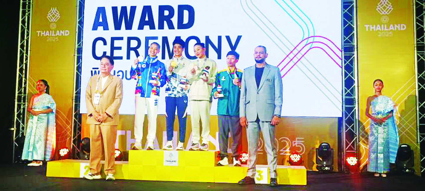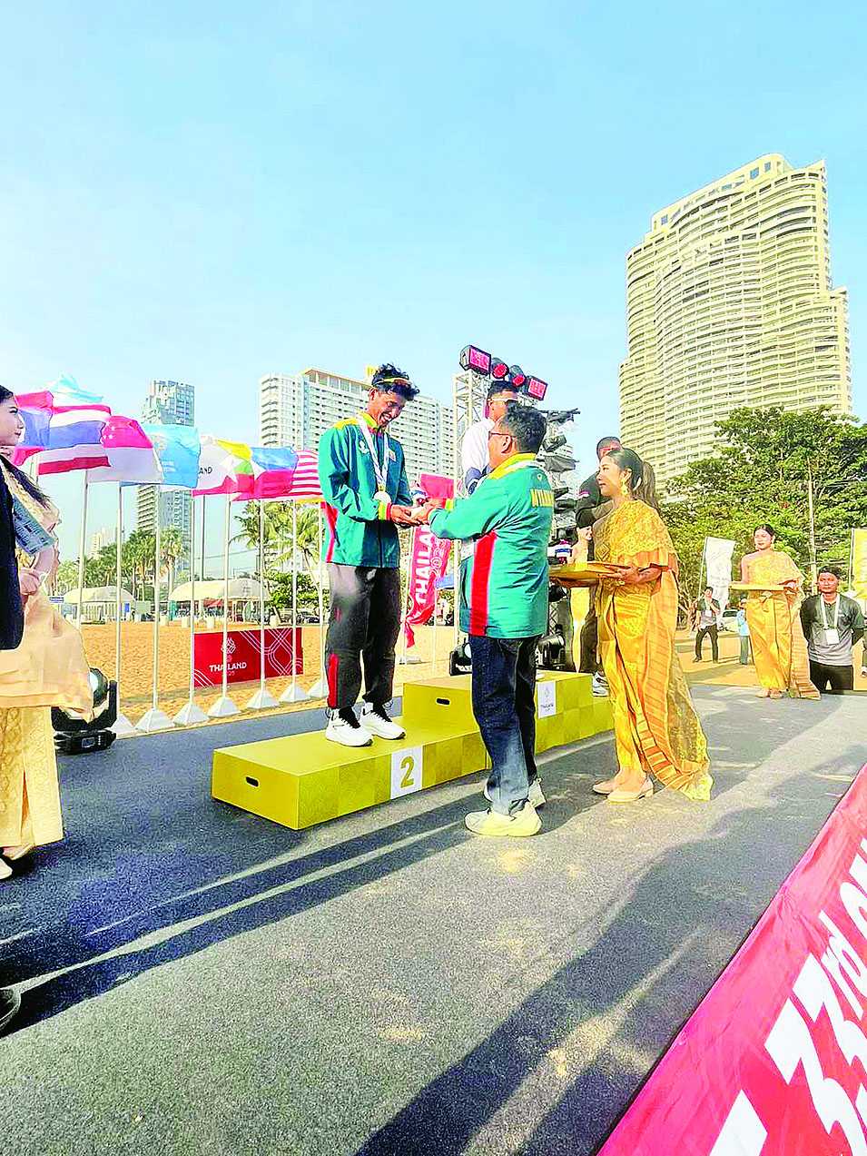 အပြည်ပြည်ဆိုင်ရာ လှေလှော်အားကစားနည်း အမျိုးသားကမ်းရိုးတန်း၊ ကမ်းခြေတစ်ယောက် လှော်(၂) တက်ပြိုင်ပွဲ ဗိုလ်လုပွဲတွင် မြန်မာအသင်းမှ ဝေယံမိုးနှင့် ထိုင်းအသင်းမှ အားကစားသမားတို့ ယှဉ်ပြိုင်လှော်ခတ်ခဲ့ရာ မြန်မာအသင်းမှ ဝေယံမိုးက ငွေတံဆိပ်ဆုကို ထပ်မံဆွတ်ခူးရယူပေးနိုင်ခဲ့ပြီး ယမန်နေ့ ပြိုင်ပွဲပွဲစဉ်များဖြစ်သည့် လက်‌ဝှေ့အားကစား နည်း ၅၄ ကီလိုတန်းပြိုင်ပွဲတွင် ထားထားနွယ်က ကြေးတံဆိပ်ဆုတစ်ခု၊ ၆၆ ကီလိုတန်းပြိုင်ပွဲတွင် ကေသွယ်ငြိမ်းက ကြေးတံဆိပ်ဆု တစ်ခု၊ ၅၀ ကီလိုတန်းပြိုင်ပွဲတွင် မြမိုးသူက ကြေးတံဆိပ်ဆု တစ်ခု ၅၇ ကီလိုတန်းပြိုင်ပွဲတွင် ဆုမြတ်နိုးက ကြေးတံဆိပ်ဆု တစ်ခု စုစုပေါင်း ကြေးတံဆိပ်ဆုလေးခုတို့ကို အသီးသီးထပ်မံဆွတ်ခူးရယူပေးနိုင်ခဲ့သည်။