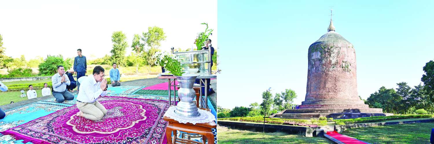ထို့နောက် နိုင်ငံတော်ယာယီသမ္မတ နိုင်ငံတော်လုံခြုံရေးနှင့်အေးချမ်းသာယာရေးကော်မရှင်ဥက္ကဋ္ဌနှင့် ဇနီးတို့သည် စေတီတော်မြတ်ကြီးအား ဖူးမြော်ကြည်ညို၍ ပန်း၊ ရေချမ်း၊ ဆီမီးကပ်လှူပူဇော်သည်။ ယင်းနောက် စေတီတော်မြတ်ကြီးအား လက်ယာရစ်လှည့်လည်ဖူးမြော်ကြည်ညို၍ စေတီတော်မြတ်ကြီး ရေရှည်တည်တံ့ခိုင်မြဲရေး ထိန်းသိမ်းဆောင်ရွက်သွားရန် တာဝန်ရှိသူများကို လမ်းညွှန်မှာကြားသည်။