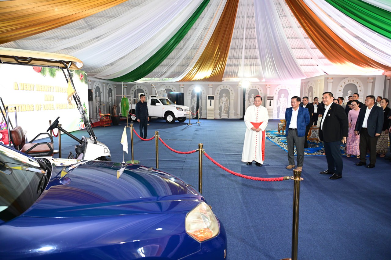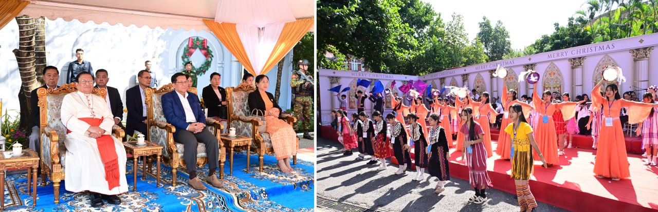 ဦးစွာ နိုင်ငံတော်ယာယီသမ္မတ နိုင်ငံတော်လုံခြုံရေးနှင့်အေးချမ်းသာယာရေးကော်မရှင်ဥက္ကဋ္ဌနှင့်ဇနီး၊ အဖွဲ့ဝင်များသည် စိန့်မေရီကာသီဒြယ်ကက်သလစ်ဘုရား ကျောင်းတော်ကြီးသို့ ရောက်ရှိကြရာ ကက်သလစ်ဂိုဏ်းချုပ်သာသနာ၊ ဂိုဏ်းချုပ်ဆရာတော်ကြီး ကာဒီနယ်ချားလ်စ်ဘိုက ကြိုဆိုနှုတ်ဆက်ပြီး ခရစ်ယာန်လူငယ်လေးများက ခရစ်ယာန်ဓမ္မတေးသီချင်းများဖြင့် သီဆိုတီးမှုတ်ကပြဖျော်ဖြေပြီး ကြိုဆိုနှုတ်ဆက်ကြသည်။