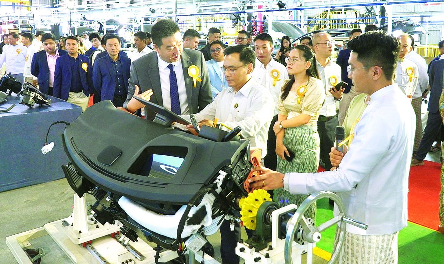 ယင်းနောက် ဒုတိယဝန်ကြီးသည် Trim Line အတိုင်း တပ်ဆင်ထုတ်လုပ်မှုအဆင့် ၁၀ ခု၊ Chassis Line အတိုင်း တပ်ဆင်ထုတ်လုပ်မှုအဆင့် ခုနစ်ခု၊ Final Line အတိုင်း တပ်ဆင်ထုတ်လုပ်မှုအဆင့် ငါးခု၊ စက်ရုံတွင်း၌ အဆင့်မြင့်ကွန်ပျူတာ ထိန်းချုပ်စနစ်များဖြင့် တပ်ဆင်ထုတ်လုပ်ပြီး EV များကို ကနဦးလျှပ်စစ်အန္တရာယ်ကင်းရှင်းမှု၊ ကိုယ်ထည်နှင့်ဘီးလေးခုဟန်ချက်ညီမှု၊ ရှေ့မီးလုံးနှင့် မီးလုံးများ ကောင်းမွန်မှု၊ ဟွန်းအချက်ပေးစနစ်ကောင်းမွန်မှု၊ ဘီးချော်ခံနိုင်မှု၊ ဘရိတ်ကောင်းမွန်မှု၊ အရှိန်ကောင်းမွန်မှု၊ မိုးရွာနေချိန် မောင်းနှင်အပြီး လျှပ်စစ်အန္တရာယ်ကင်းရှင်းမှု၊ စက်ရုံပြင်ပတွင် လမ်းကြမ်းနှင့် ရေဝပ်လမ်းအပါအဝင် လမ်းပုံစံအမျိုးမျိုး၌ မောင်းနှင်မှု၊ ရှေ့ကားပေါ် မူတည်၍ အရှိန်ပြောင်းလဲသွားမှု စသည့် Test Drive အခြေအနေများ၊ အများပြည်သူသုံး EV Taxi တို့ကို လှည့်လည်ကြည့်ရှုစစ်ဆေးပြီး သတ်မှတ်အရည်အသွေး စံချိန်စံညွှန်းများနှင့်အညီ စနစ်တကျတပ်ဆင်ထုတ်လုပ်သွားရန်၊ EV သုတေသနနှင့် လူ့စွမ်းအားအရင်း အမြစ်ဖွံ့ဖြိုးတိုးတက်ရေးလုပ်ငန်းများတွင် ပူးပေါင်းဆောင်ရွက်သွားရန်နှင့် လိုအပ်သည်များကို မှာကြားသည်။