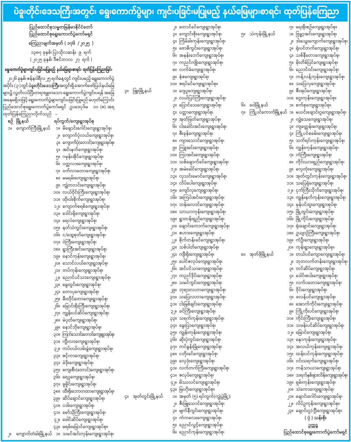 ပဲခူးတိုင်းဒေသကြီးအတွင်း ရွေးကောက်ပွဲများကျင်းပခြင်းမပြုမည့် နယ်မြေများစာရင်း ထုတ်ပြန်ကြေညာ 12/28/2025 ပဲခူးတိုင်းဒေသကြီးအတွင်း ရွေးကောက်ပွဲများကျင်းပခြင်းမပြုမည့် နယ်မြေများစာရင်း ထုတ်ပြန်ကြေညာ