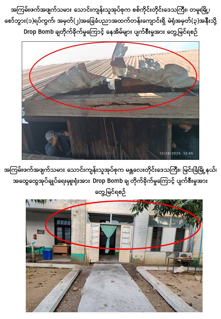 ထို့သို့လုပ်ဆောင်ခဲ့ကြရာ အကြမ်းဖက်အဖျက်သမားသောင်းကျန်းသူအုပ်စုများအနေဖြင့် ပါတီစုံဒီမိုကရေစီအထွေထွေရွေးကောက်ပွဲအပိုင်း (၁) ကျင်းပခဲ့သည့် ဒီဇင်ဘာ ၂၈ ရက်နေ့၌ ကချင်ပြည်နယ်၊ မြစ်ကြီးနားမြို့၊ ရွှေညောင်ပင်ရပ်ကွက်၊ အမှတ် (၁၁) အခြေခံ ပညာအထက်တန်းကျောင်းရှိ မဲရုံအမှတ် (၈၂) ၌ လက်လုပ်အသံမိုင်းဖောက်ခွဲခြင်း၊ ကယားပြည်နယ်၊ လွိုင်ကော်မြို့၊ ရွှေတောင်ရပ်ကွက်နှင့် မင်္ဂလာရပ်ကွက်အတွင်းသို့ ၁၀၇ မမ လက်လုပ်ဗုံးသီးများဖြင့် ပစ်ခတ်တိုက်ခိုက်ခြင်း၊ ကရင်ပြည်နယ်၊ မြဝတီမြို့၊ အမှတ် (၃) ရပ်ကွက်ရှိ ကမ္ဘောဇဘဏ်အနီးနှင့် အမှတ် (၅) ရပ်ကွက်ရှိ မြန်မာ-ထိုင်း ချစ်ကြည်ရေး အမှတ် (၂) တံတားအနီးတို့၌ ဒေသန္တရလက်လုပ်မိုင်းများ ဖောက်ခွဲခြင်း၊ တနင်္သာရီတိုင်းဒေသကြီးအစိုးရအဖွဲ့ရုံးအား Fixed Wing ဖြင့် ပစ်ခတ်ခြင်း၊ ခမောက်ကြီးမြို့၊ အောင်ချမ်းသာကျေးရွာအုပ်စု၊ ယုဇနဆီအုန်းကုမ္ပဏီ၊ မာရမ်းပျိုးခြံမှ ဆန္ဒမဲပေးရန် မဲရုံသို့ သွားရောက်သည့် ဆီအုန်းခြံလုပ်သား ၁၇၀ ဦးအား တားဆီးခြင်း၊ စစ်ကိုင်းတိုင်းဒေသကြီး၊ ရွှေဘိုမြို့၊ အမှတ် (၃) ရပ်ကွက်ရှိ မဲရုံအမှတ် (၂) အနီးသို့ Drop Bomb ချတိုက်ခိုက်ခြင်း၊ စစ်ကိုင်းမြို့၊ တိုင်းရင်းသားလူငယ်များစွမ်းရည်ဖွံ့ဖြိုးရေးဒီဂရီကောလိပ်သို့ လက်လုပ်ရှော့တိုက်ဒုံး (၆) လုံးဖြင့် ပစ်ခတ်တိုက်ခိုက်ခြင်း၊ တမူးမြို့၊ စော်ဘွား (၁) ရပ်ကွက်၊ အမှတ် (၂) အခြေခံပညာအထက်တန်းကျောင်းရှိ မဲရုံအမှတ် (၃) အနီးသို့ Drop Bomb ချတိုက်ခိုက်ခြင်း၊ ကသာမြို့မြောက်ဖက်နှင့် တောင်ဖက်မှ လက်နက်ငယ်၊ လက်နက်ကြီးများဖြင့် နှောင့်ယှက်ပစ်ခတ်ခြင်း၊ မန္တလေးတိုင်းဒေသကြီး၊ မတ္တရာမြို့နယ်၊ နန်းတော်ကျွန်းကျေးရွာအတွင်းနှင့် အောင်မြေသာဇံမြို့နယ်အတွင်းတို့သို့ ၁၀၇ မမ ရှော့တိုက်ဒုံးများဖြင့် ပစ်ခတ်တိုက်ခိုက်ခြင်း၊ မြင်းခြံမြို့ ထွေ/အုပ်ရုံးအနီး၊ တရားရုံးအနီးနှင့် ဗဟိုအကျဉ်းထောင်ကြားလမ်းအနီးတို့သို့ Drop Bomb ချတိုက်ခိုက်ခြင်း၊ ညောင်ဦးမြို့နယ်၊ ဇုန်အမှတ် (၉)၊ မဲရုံအမှတ် (၆၄)၊ အခြေခံ ပညာမူလတန်းကျောင်း (ပြွန်) စာသင်ကျောင်းအနီးသို့ လက်နက်ငယ်များဖြင့် လာရောက်နှောက်ယှက်ပစ်ခတ်တိုက်ခိုက်ခြင်းစသည့် အကြမ်းဖက်အဖျက်အမှောင့်လုပ်ရပ်များကို ဒီဇင်ဘာလ ၂၇ ရက်နေ့ ညနေမှ ၂၈ ရက်နေ့ ညနေပိုင်းအထိ အပိုင်း (၁) မဲဆန္ဒနယ် (၁၀၂) မြို့နယ်အနက် မြို့နယ် (၁၁) ခုတို့၌ နှောင့်ယှက်မှုများ ပြုလုပ်ခဲ့ကြရာ ပြည်သူ ၅ ဦးခန့်သာ အနည်းငယ်ထိခိုက်ဒဏ်ရာရမှုဖြစ်ပွားခဲ့သော်လည်း လွတ်လပ်၍ တရားမျှတပြီး ဂုဏ်သိက္ခာရှိသည့် ပါတီစုံဒီမိုကရေစီအထွေထွေရွေးကောက်ပွဲသို့ နှောင့်ယှက်ပစ်ခတ်မှုနှင့် ခြိမ်းခြောက်မှုများကြားမှ အပိုင်း (၁) ကျင်းပသည့် (၁၀၂) မြို့နယ်