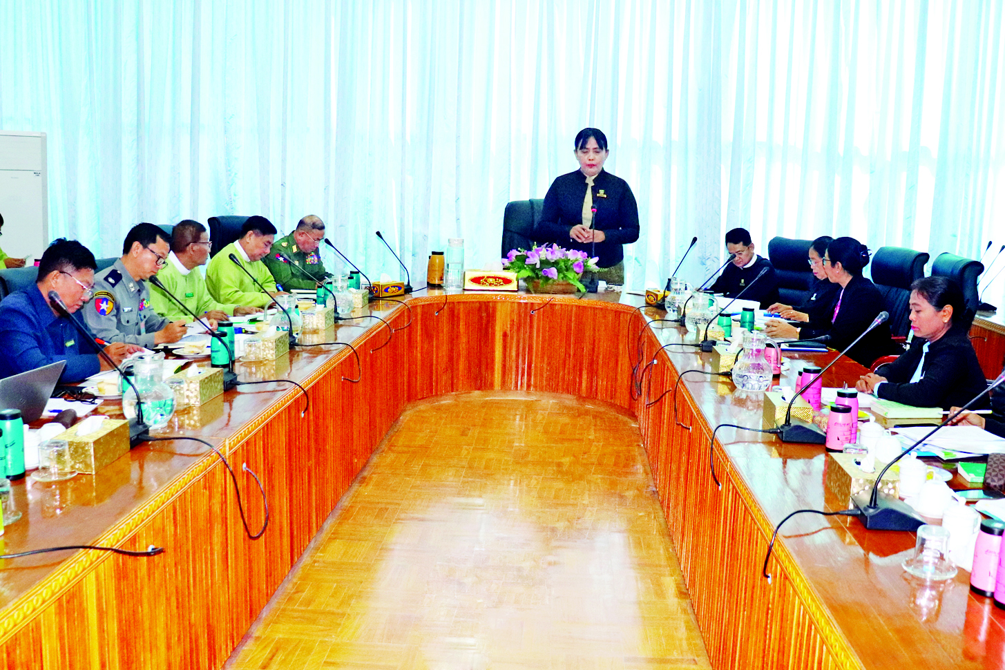အစည်းအဝေးသို့ ဥပဒေရေးရာဝန်ကြီးဌာန ပြည်ထောင်စုဝန်ကြီးနှင့် ပြည်ထောင်စုရှေ့နေချုပ် ဒေါက်တာသီတာဦး၊ ဒုတိယဝန်ကြီးနှင့် ဒုတိယရှေ့နေချုပ် ဒေါက်တာထိန်လင်းဦး၊ ပြည်ထဲရေးဝန်ကြီးဌာန ဒုတိယဝန်ကြီး ဗိုလ်ချုပ်အောင်ကျော်ကျော်၊ ဥပဒေမူကြမ်းစိစစ်ရေးဦးစီးဌာန၊ ဥပဒေအကြံဉာဏ်ပေးရေးဦးစီးဌာန၊ တရားစွဲနှင့် အမှုလိုက်ဦးစီးဌာန၊ အထွေထွေအုပ်ချုပ်ရေးဦးစီးဌာနနှင့် ငွေကြေးခဝါချမှုတားဆီးနှိမ်နင်းရေးရဲတပ်ဖွဲ့တို့မှ တာဝန်ရှိသူများ တက်ရောက်ကြသည်။