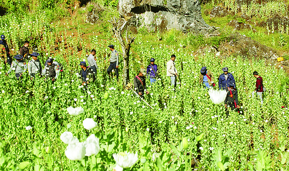 ထို့အတူနံနက် ၇ နာရီ ၁၀ မိနစ်မှ ညနေ ၄ နာရီအထိ ရှမ်းပြည်နယ် ရဲတပ်ဖွဲ့မှတပ်ဖွဲ့ဝင်များနှင့် ဌာနဆိုင်ရာဝန်ထမ်းများ ပါဝင်သောပူးပေါင်းအဖွဲ့က လွိုင်လင်မြို့နယ် ဆဟောင်း ကျေးရွာအုပ်စု ဟွေတကျေးရွာ၏ တောင်ဘက်လေးဖာလုံခန့်အကွာရှိ သီးပွင့်ဆဲဘိန်းစိုက်ခင်း ဧက ၂၀ ခန့်၊ လွိုင်လောင်ကျေးရွာ၏ အရှေ့ဘက်ခုနစ်ဖာလုံခန့်အကွာရှိ သီးပွင့်ဆဲဘိန်းစိုက်ခင်း ၁၀ ဧကခန့်၊ ရီဝင်းကျေးရွာ၏ မြောက်ဘက်သုံးဖာလုံခန့်အကွာရှိ သီးပွင့်ဆဲဘိန်းစိုက်ခင်း ၁၀ ဧကခန့်၊ ရီဝင်းကျေးရွာ၏ မြောက်ဘက် နှစ်ဖာလုံခန့်အကွာရှိ သီးပွင့်ဆဲဘိန်းစိုက်ခင်းဧက ၂၀ ခန့်၊ ပန်မုန့်ကျေးရွာအုပ်စု ရွှေပန်းကျေးရွာ၏မြောက်ဘက် သုံးဖာလုံခန့်အကွာရှိ သီးပွင့်ဆဲဘိန်းစိုက် ခင်း ၁၅ ဧကခန့်၊ ကျောင်းပေါ် ကျေးရွာ၏ အရှေ့ဘက် တစ်မိုင်ခန့်အကွာရှိ သီးပွင့်ဆဲဘိန်းစိုက်ခင်း ၂၆ ဧကခန့်၊ ဟဲနန်းကျေးရွာ၏ အနောက်တောင်ဘက် ငါးဖာလုံခန့်အကွာရှိ သီးပွင့်ဆဲဘိန်းစိုက် ခင်း ၃၄ ဧကခန့်တို့အားလည်းကောင်း ဖျက်ဆီးရှင်းလင်းခြင်းများ ဆောင်ရွက်ခဲ့ကြောင်း သိရသည်။