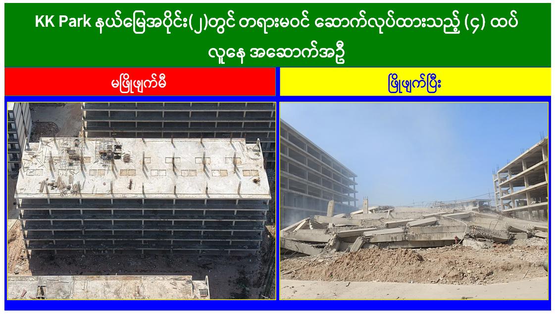 မြန်မာနိုင်ငံအစိုးရအနေဖြင့် အွန်လိုင်းလိမ်လည်လောင်းကစားမှုများ အများဆုံးအခြေချလုပ်ကိုင်လျက်ရှိကြသည့် ရွှေကုက္ကိုလ်နယ်မြေနှင့် KK Park နယ်မြေများရှိ တရားမဝင်အဆောက်အအုံများအတွင်း ဝင်ရောက်ရှင်းလင်း၍ အွန်လိုင်းလိမ်လည်လောင်းကစားမှုလုပ်ငန်းစဉ်များတွင် အသုံးပြုခဲ့သည့် သိမ်းဆည်းရမိပစ္စည်းများအား စနစ်တကျဖျက်ဆီးခြင်းနှင့် တရားမဝင်အဆောက်အအုံများအား စနစ်တကျဖြိုချ ဖျက်ဆီးခြင်းများကို အဖွဲ့စုံပါဝင်သည့် ပူးပေါင်းအဖွဲ့ဖြင့် ဆောင်ရွက်လျက်ရှိရာ ယနေ့တွင်လည်း KK Park နယ်မြေအတွင်းရှိ တရားမဝင်အဆောက်အအုံ ၈ လုံးကို ထပ်မံဖြိုချ ဖျက်ဆီးခဲ့ကြောင်း သိရှိရသည်။