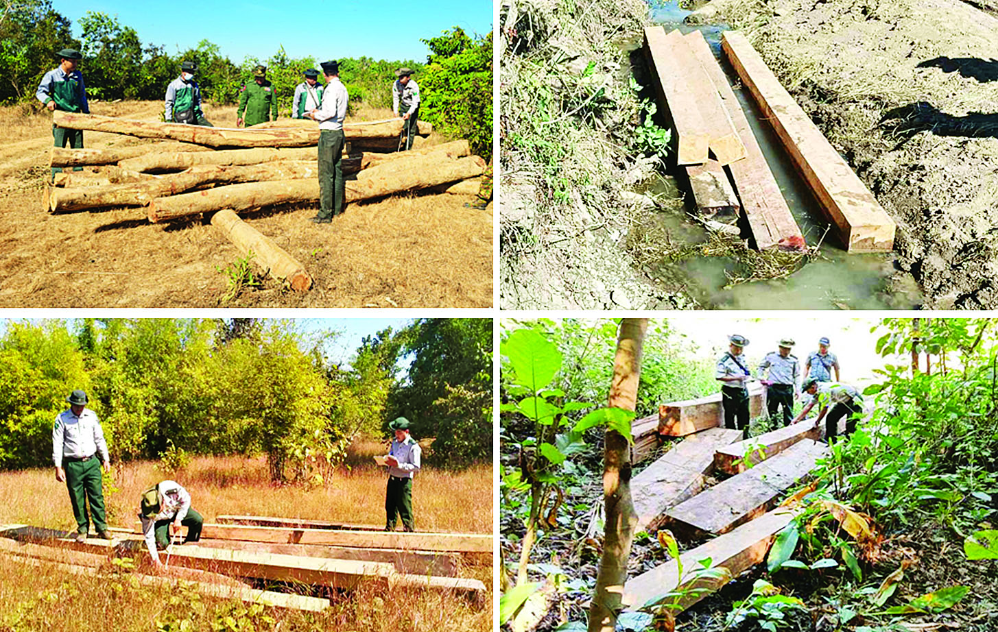 ထို့အပြင် ဧရာဝတီတိုင်းဒေသကြီး တရားမဝင်ကုန်သွယ်မှုတိုက်ဖျက်ရေးအထူးအဖွဲ့၏ စီမံခန့်ခွဲမှုဖြင့် တာဝန်ကျပူးပေါင်းအဖွဲ့များက စစ်ဆေးမှုများဆောင်ရွက်ခဲ့ရာ ဒီဇင်ဘာ ၂၀ ရက်နှင့် ၂၃ ရက်တို့တွင် ပုသိမ်မြို့နယ်၊ အင်္ဂပူမြို့နယ်၊ မြန်အောင်မြို့နယ်၊ ကြံခင်းမြို့နယ်နှင့် သာပေါင်းမြို့နယ်တို့အတွင်း၌ တရားမဝင်ကျွန်းသစ် ၀ ဒသမ ၈၄၆ တန်၊ သစ်မာ ၂ ဒသမ ၅၇၂ တန်၊ အခြားသစ် ၇ ဒသမ ၇၅၆ တန် စုစုပေါင်းခန့်မှန်းတန်ဖိုးငွေကျပ် ၂၅၀၂၂၈၈ ကို ဖမ်းဆီးရမိခဲ့ပြီး သစ်တောဥပဒေနှင့်အညီ အရေးယူဆောင်ရွက်လျက်ရှိသည်။