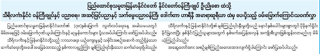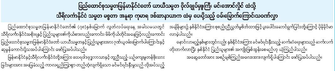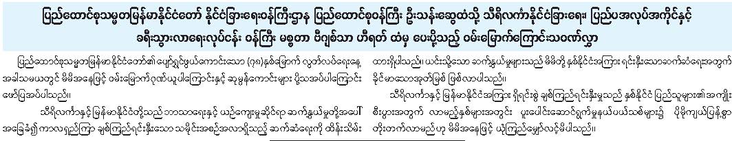 ပြည်ထောင်စုသမ္မတမြန်မာနိုင်ငံတော်၏ (၇၈) နှစ်မြောက် လွတ်လပ်ရေးနေ့အတွက် ပြည်ပနိုင်ငံ အကြီးအကဲများက ဝမ်းမြောက်ကြောင်း သဝဏ်လွှာပေးပို့