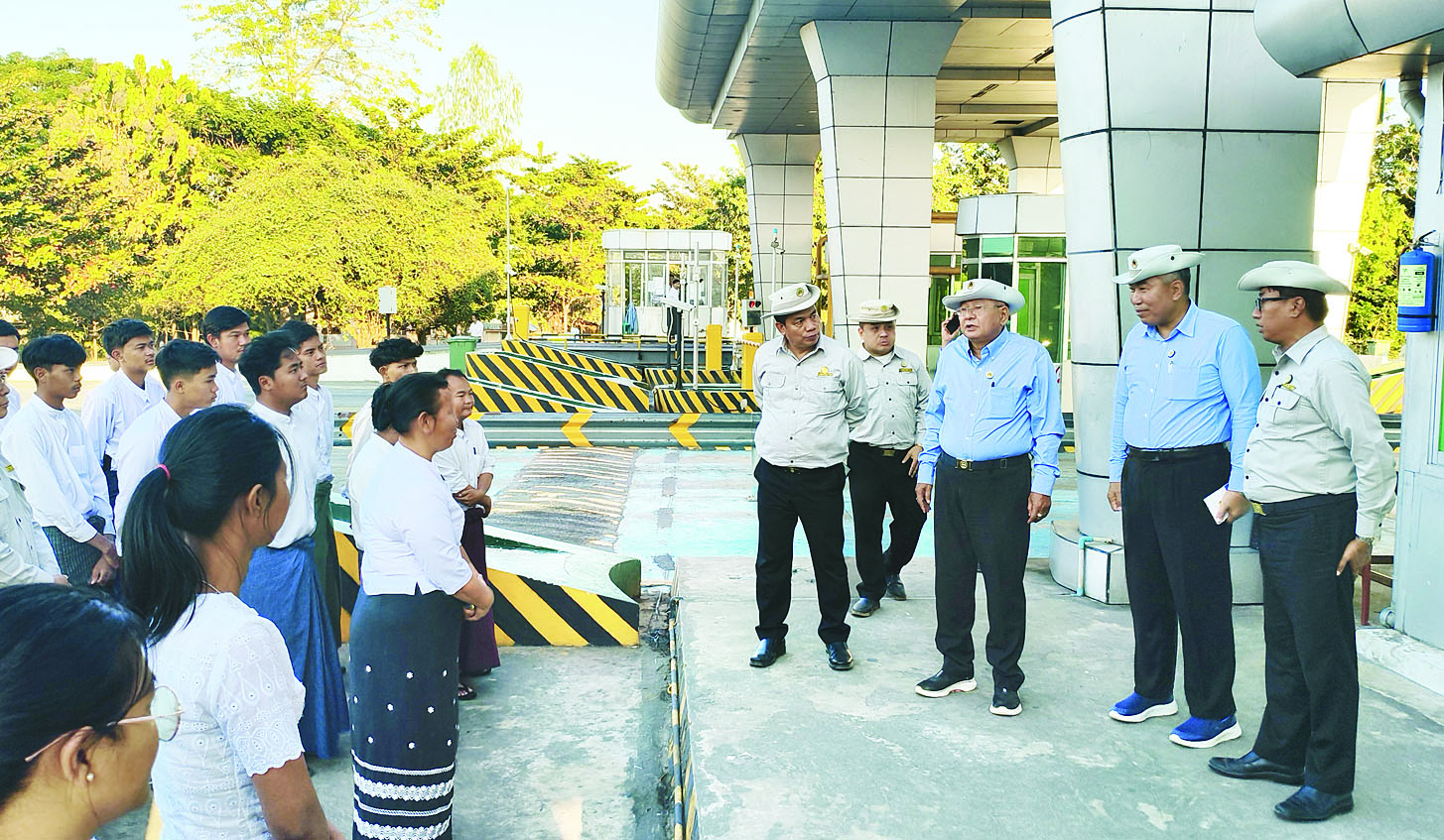 ဦးစွာ ဒုတိယဝန်ကြီးနှင့်အဖွဲ့သည် အမှတ်(၃)လမ်းဆုံတိုးလ်ဂိတ်ရှိ ငွေကောက်ခံမှုစနစ်များနှင့် နည်းပညာဆိုင်ရာဆောင်ရွက်ထားမှု၊ အမြန်လမ်းမကြီး၌ ဖြတ်သန်းခွင့်ရှိသည့် Telematic စနစ် တပ်ဆင်ထားသည့် သတ်မှတ်ကုန်တင်ယာဉ်များနှင့် ခရီးသည်တင်မှန်လုံယာဉ်များ ဘေးအန္တရာယ်ကင်းရှင်း၍ လမ်းခရီးချောမွေ့စွာသွားလာနိုင်ရေးအတွက် သတ်မှတ်တန်ချိန် ကျော်လွန်မှုမရှိစေရန် တိုးလ်ဂိတ်ရှိ ကတ္တားပေါ်၌ ချိန်တွယ်နေမှု၊ နေ့စဉ်ကောက်ခံရရှိသည့် မော်တော်ယာဉ်ဖြတ်သန်းခများအား စနစ်တကျစာရင်းပြုစုထားမှု၊ တိုးလ်ဂိတ်အဆောက်အအုံနှင့် ပတ်ဝန်းကျင်သန့်ရှင်းသပ်ရပ်မှုအခြေအနေတို့ကို ကြည့်ရှုစစ်ဆေးရာ တာဝန်ရှိသူများက လုပ်ငန်းဆောင်ရွက်နေမှုအခြေအနေများကို ရှင်းလင်းတင်ပြသည်။