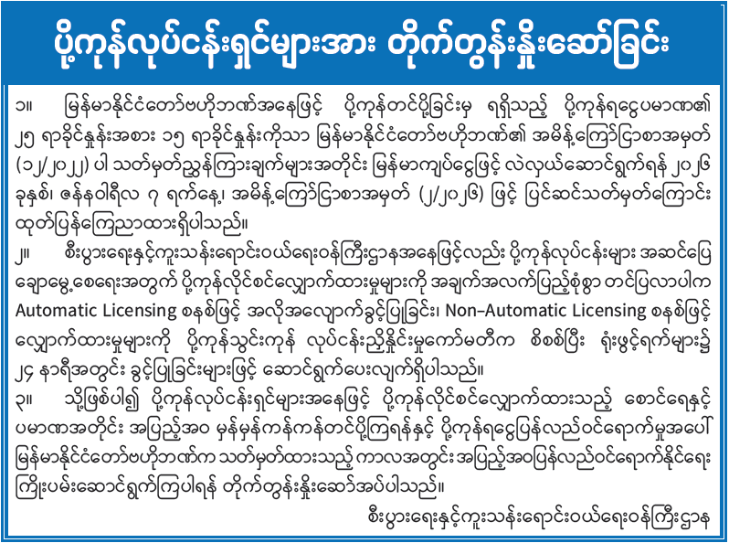 ဝန်ကြီးဌာန ကြေညာချက်များ