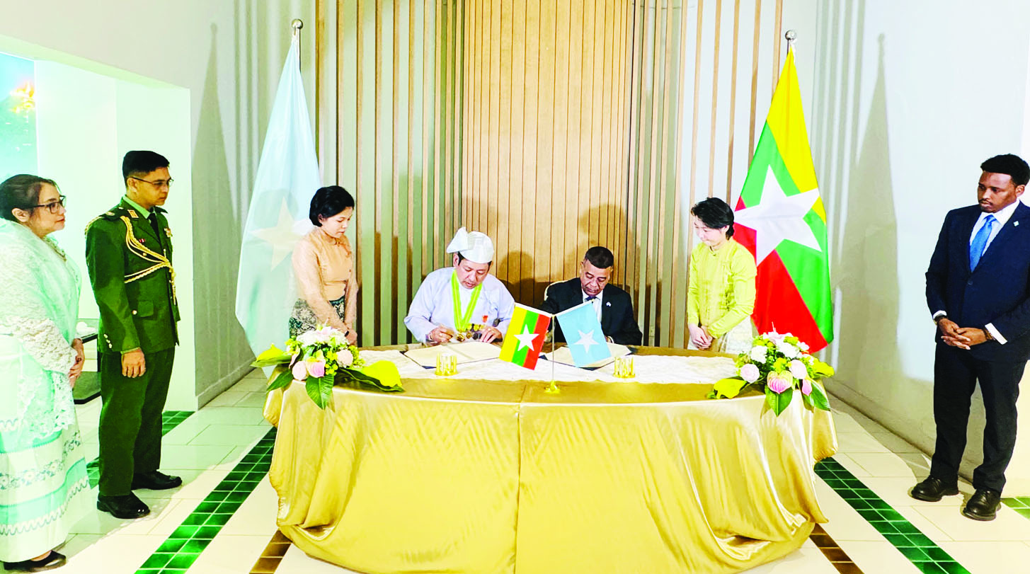 ပြည်ထောင်စုသမ္မတ မြန်မာနိုင်ငံတော်နှင့် ဆိုမာလီယာ ဖက်ဒရယ်သမ္မတနိုင်ငံတို့အကြား သံတမန်အဆက်အသွယ် ထူထောင်ခြင်းဆိုင်ရာ ပူးတွဲကြေညာချက်ကို မလေးရှားနိုင်ငံဆိုင်ရာ မြန်မာသံရုံးယာယီတာဝန်ခံ/သံအမတ်ကြီး ဦးအောင်ကျော်မိုးနှင့် မလေးရှားနိုင်ငံဆိုင်ရာ ဆိုမာလီယာ သံအမတ် ကြီး Mr. Ali Mohamed Abukar တို့က ၂၀၂၆ ခုနှစ် ဇန်နဝါရီ ၉ ရက်တွင် ကွာလာလမ်ပူမြို့ မြန်မာသံရုံး၌ လက်မှတ်ရေးထိုးခဲ့ကြသည်။