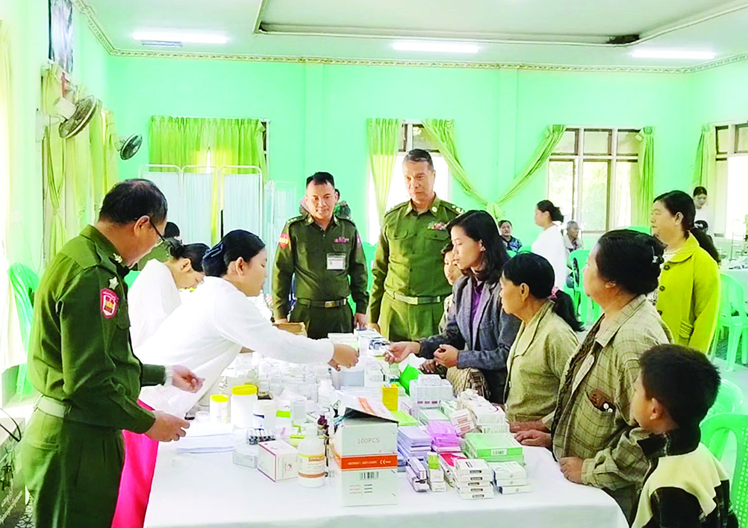 ရန်ကုန်တိုင်းဒေသကြီး မှော်ဘီမြို့နယ် အင်းလျက်ကျေးရွာနှင့် ပတ်ဝန်းကျင်ကျေးရွာများရှိ သံဃာတော်များနှင့် ဒေသခံပြည်သူများအား ယနေ့တွင် ရန်ကုန်တိုင်းစစ်ဌာနချုပ် နယ်လှည့်ဆေးကုသရေးအဖွဲ့က အဆိုပါကျေးရွာရှိ ဖန်ခါးကုန်းကျောင်းတိုက်၌ အခြေပြု၍ ကျန်းမာရေးစောင့်ရှောက်မှုလုပ်ငန်းများ ဆောင်ရွက်ပေးသည်။