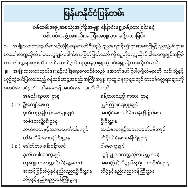 ဝန်ကြီးဌာန ကြေညာချက်များ