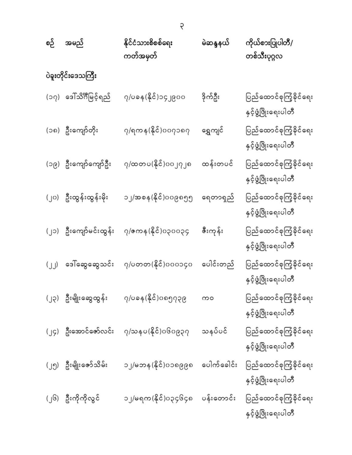 ပြည်သူ့လွှတ်တော်ကိုယ်စားလှယ်အဖြစ် ရွေးကောက်တင်မြှောက်ခံရသူများ အမည်စာရင်းကြေညာခြင်း