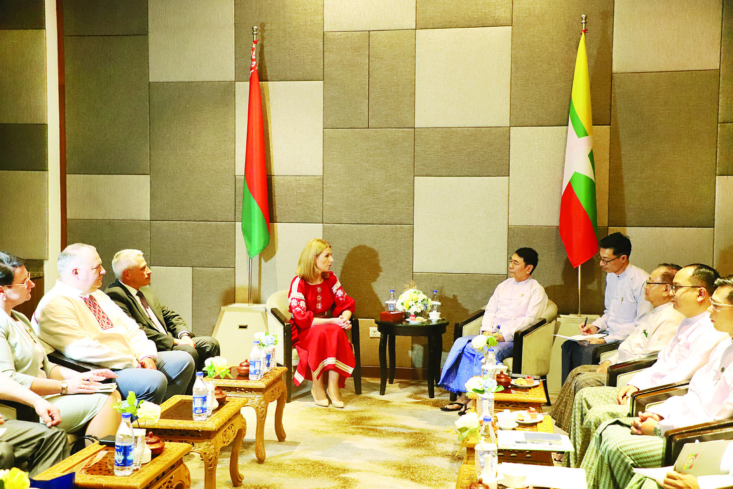 ပြည်ထောင်စုရွေးကောက်ပွဲကော်မရှင်အဖွဲ့ဝင် ဦးအောင်စောဝင်းသည် ဘယ်လာရုစ်သမ္မတနိုင်ငံ၊ ဘယ်လာရုစ်ပါတီ (Belarusian Party Belaya Rus) ဥက္ကဋ္ဌ Ms. Vohla N. Chamadanova ဦးဆောင်သော ကိုယ်စားလှယ်အဖွဲ့အား ယမန်နေ့ မွန်းလွဲ ၂ နာရီ တွင် ရန်ကုန်မြို့ Park Royal Hotel ၌ လက်ခံတွေ့ဆုံသည်။