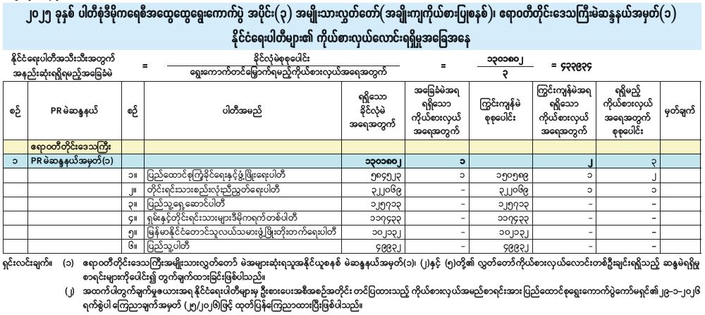 ၂၀၂၅ ခုနှစ် ပါတီစုံဒီမိုကရေစီအ‌ထွေထွေရွေးကောက်ပွဲ အပိုင်း (၃) အမျိုးသားလွှတ်တော် (အချိုးကျကိုယ်စားပြုစနစ်)၊ ဧရာဝတီတိုင်းဒေသကြီး မဲဆန္ဒနယ်အမှတ် (၁) နိုင်ငံရေးပါတီများ၏ ကိုယ်စားလှယ်လောင်းရရှိမှုအခြေအနေ