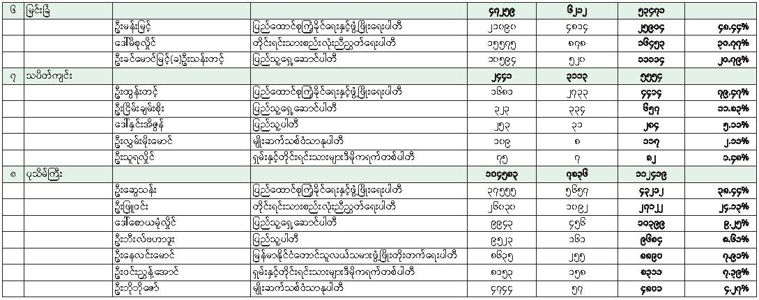 ၂၀၂၅ ခုနှစ် ပါတီစုံဒီမိုကရေစီအ‌ထွေထွေရွေးကောက်ပွဲ အပိုင်း(၃) တိုင်းဒေသကြီးလွှတ်တော် သို့မဟုတ် ပြည်နယ်လွှတ်တော်ကိုယ်စားလှယ်လောင်းတစ်ဦးချင်း ဆန္ဒမဲရရှိမှုအခြေအနေ