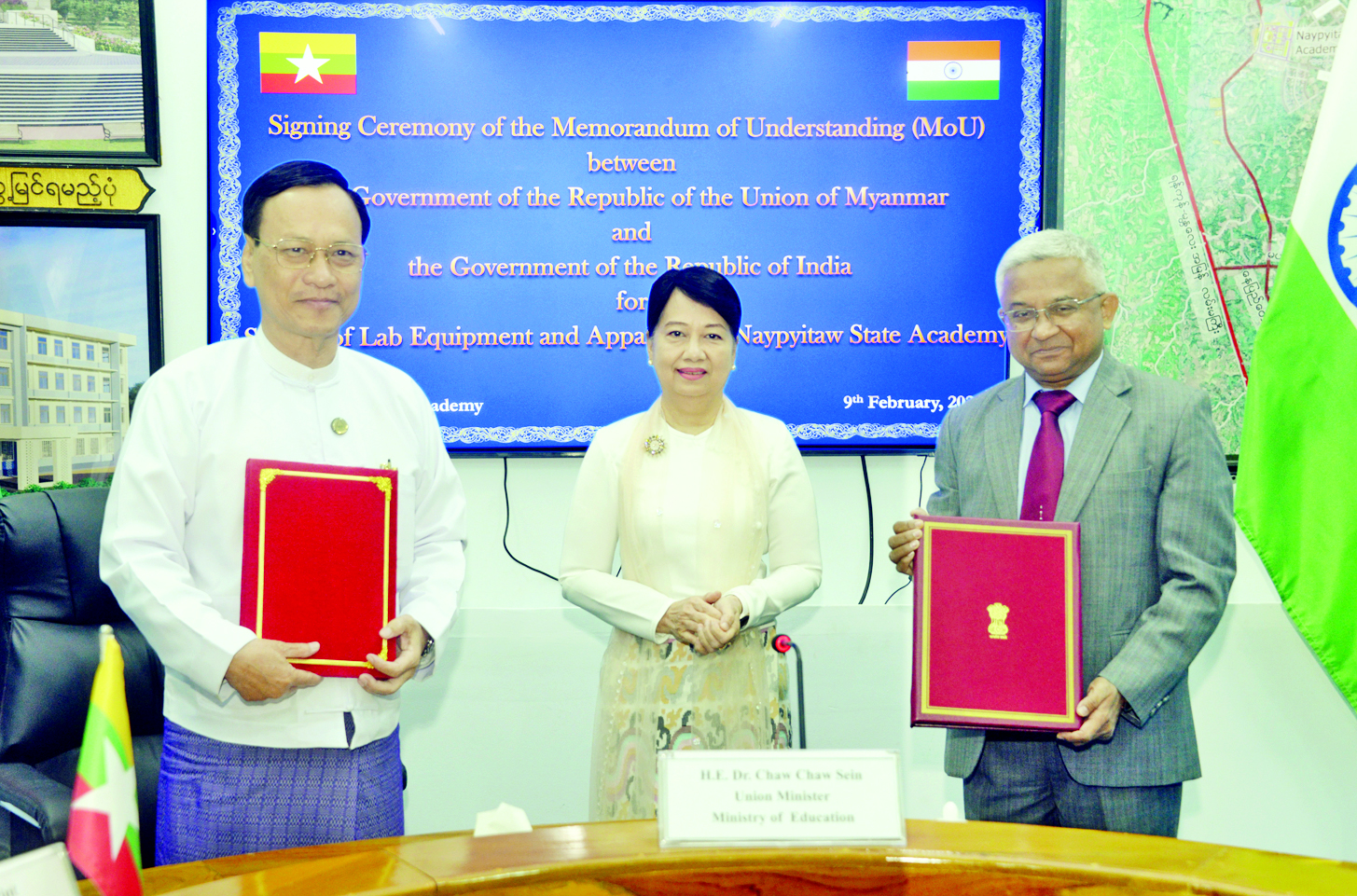 ပြည်ထောင်စုသမ္မတ မြန်မာနိုင်ငံတော်အစိုးရနှင့် အိန္ဒိယသမ္မတနိုင်ငံအစိုးရတို့အကြား Naypyitaw State Academy ၌ ဓာတ်ခွဲခန်းသုံးပစ္စည်းကိရိယာများထောက်ပံ့နိုင်ရေး နားလည်မှုစာချွန်လွှာ (MoU) လက်မှတ်ရေးထိုး