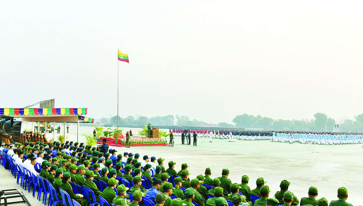 ဦးစွာ တပ်မတော်လေ့ကျင့်ရေးအရာရှိချုပ်နှင့် တက်ရောက်လာကြသူများက နိုင်ငံတော်အလံနှင့် ကျဆုံးလေပြီးသော တပ်မတော်သားများအား အလေးပြုပြီးနောက် တပ်မတော်လေ့ကျင့်ရေးအရာရှိချုပ်က အဖွင့်မိန့်ခွန်းပြောကြားသည်။