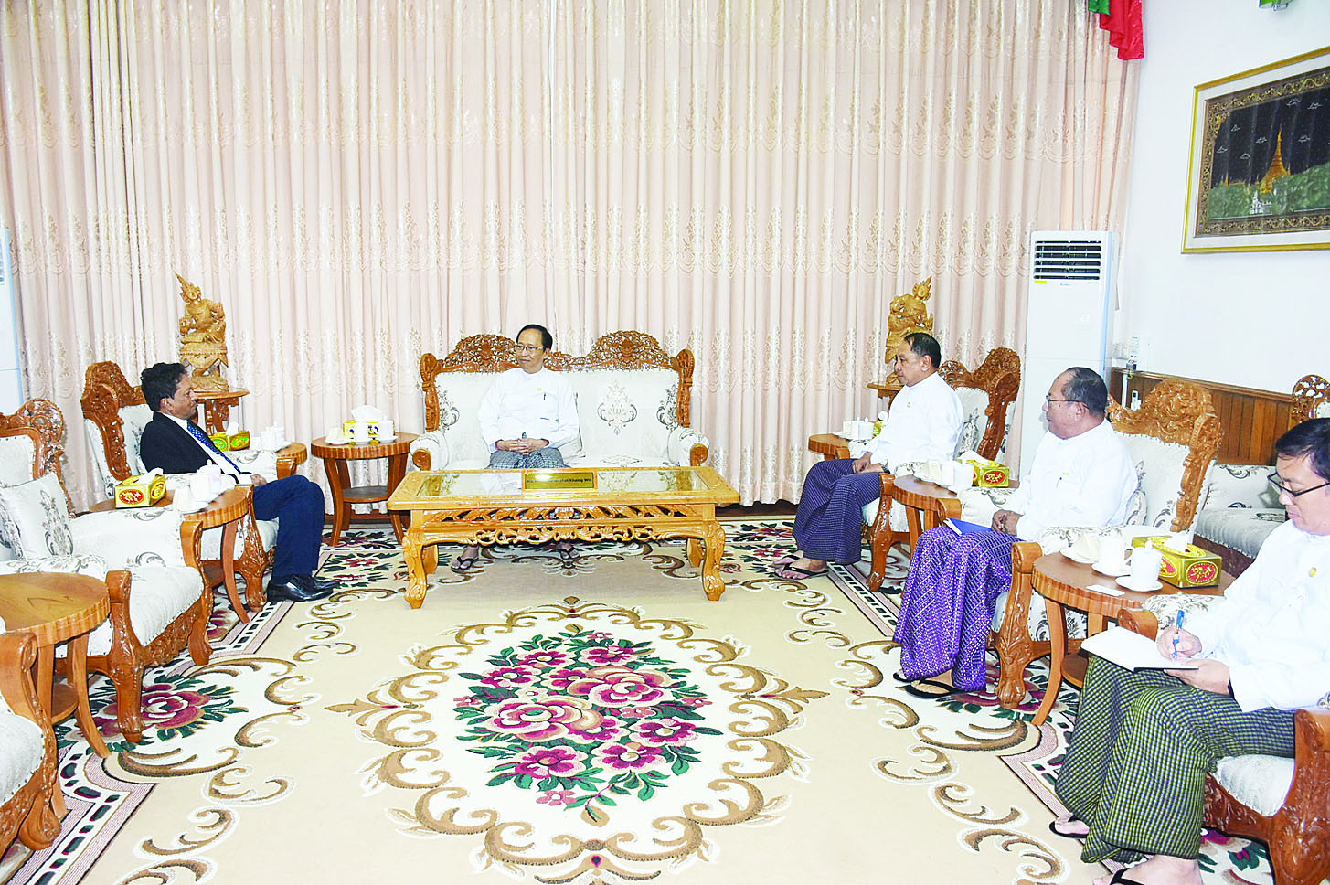 ကျန်းမာရေးဝန်ကြီးဌာန ပြည်ထောင်စုဝန်ကြီး ဒေါက်တာသက်ခိုင်ဝင်းသည် တာဝန်ပြီးဆုံး၍ မြန်မာနိုင်ငံမှ ပြန်လည်ထွက်ခွာမည့် ကမ္ဘာ့ကျန်းမာရေးအဖွဲ့(WHO) မှ မြန်မာနိုင်ငံဆိုင်ရာ ဌာနေကိုယ်စားလှယ် Mr. Thushara Fernando အား ယမန်နေ့ မွန်းလွဲပိုင်းက ကျန်းမာရေးဝန်ကြီးဌာန ပြည်ထောင်စုဝန်ကြီး ဧည့်ခန်းမ၌ လက်ခံတွေ့ဆုံသည်။